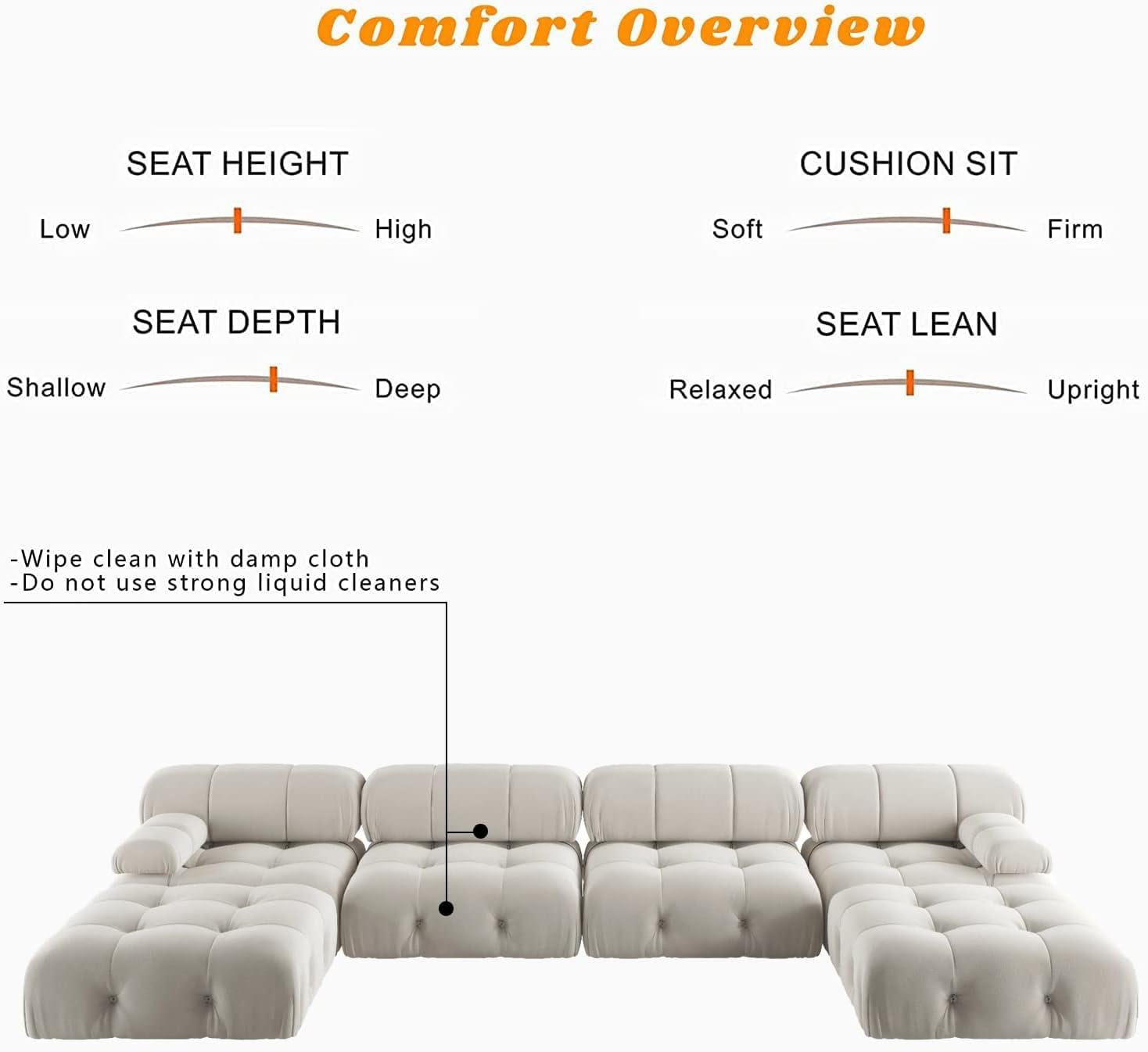 Details: Plush comfort, clean-lined design and spacious profile makes an attractive statement in the modern home. Covered in performance velvet, this upholstered sectional sofa couch comes with a solid wood construction and foam padded for a luxurious sink-in feel. Reversible ottomans for free combination and personal needs. A haven for cozy relaxation to offer a feeling of relaxation and calming comfort while lounging, making this large modern sofa the perfect addition to the living room, offiice, apartment, any small or large spaces.