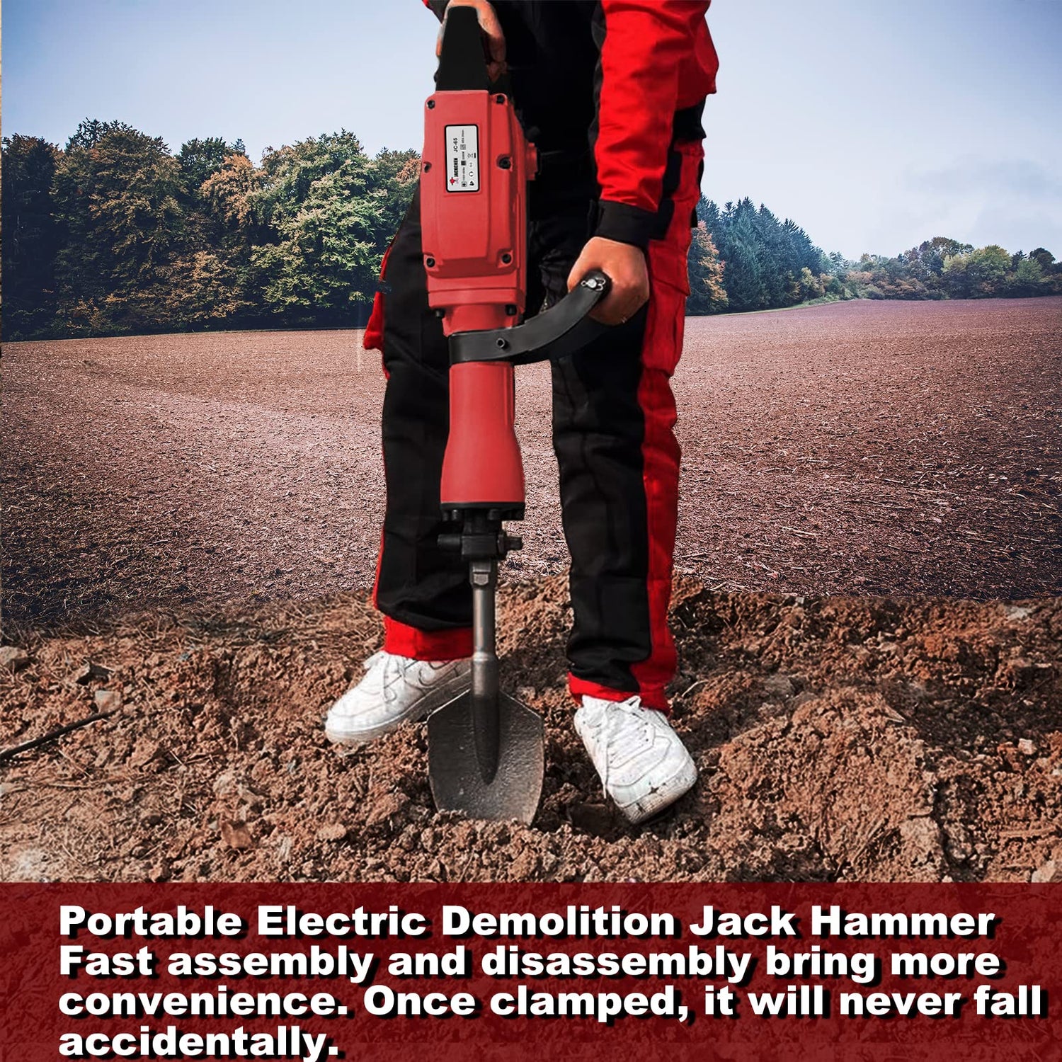 - 【WIDE APPLICATION】:Ideal for crushed concrete, asphalt removal, ditching operations and driving ground rods. Also apply to compacting loose material if suitable parts are installed. Reliable heavy duty electric demolition jack hammer is suitable for professional or daily home users.