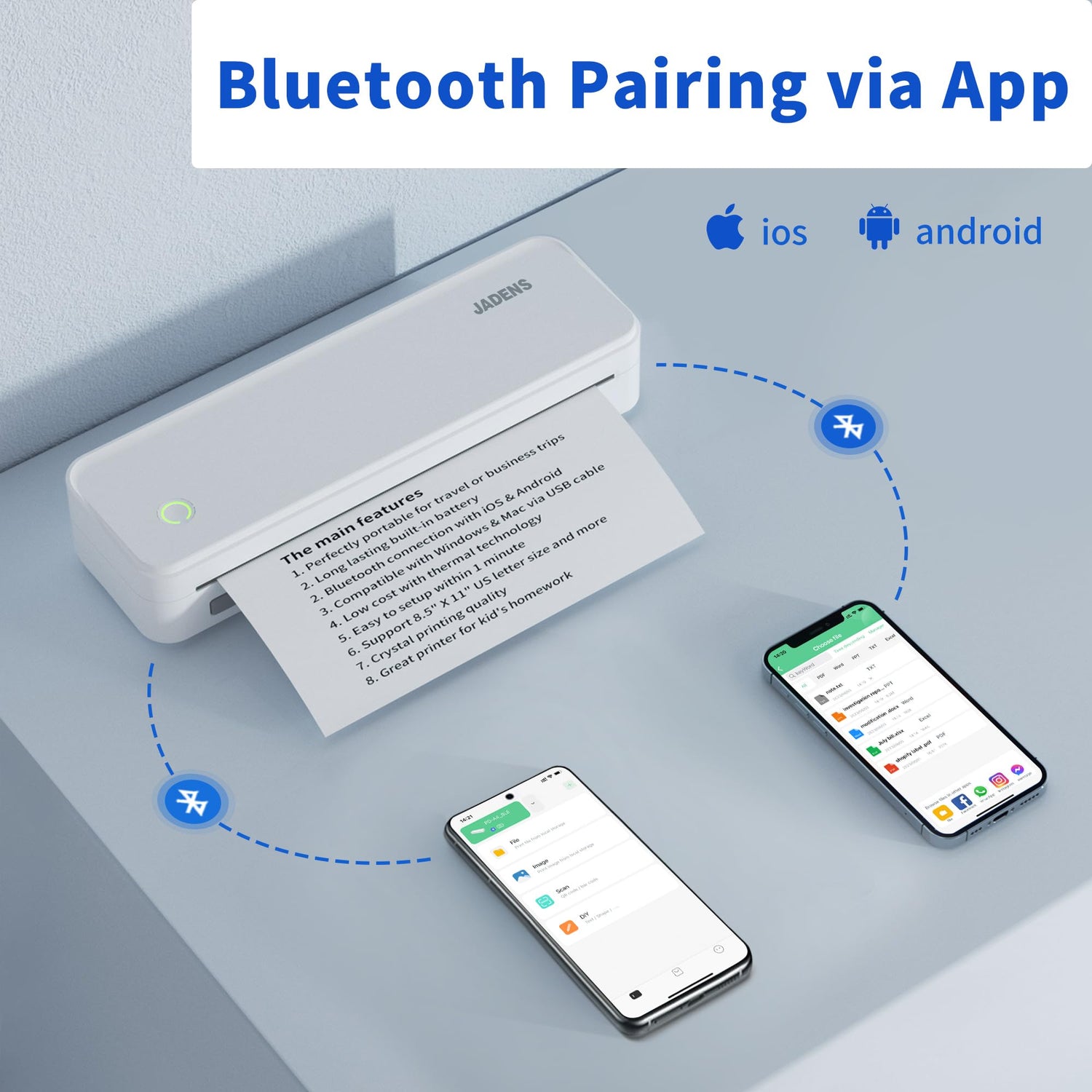 JADENS Portable Printers Wireless for Travel, Support 8.5" X 11" US Letter, Bluetooth Thermal Printer Compatible with iOS, Android & Laptop, Inkless Mobile Printer for Office, Home, School