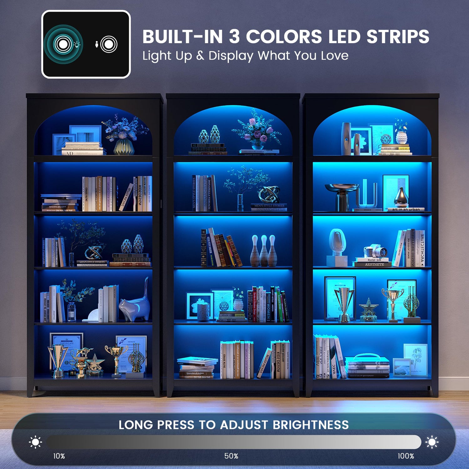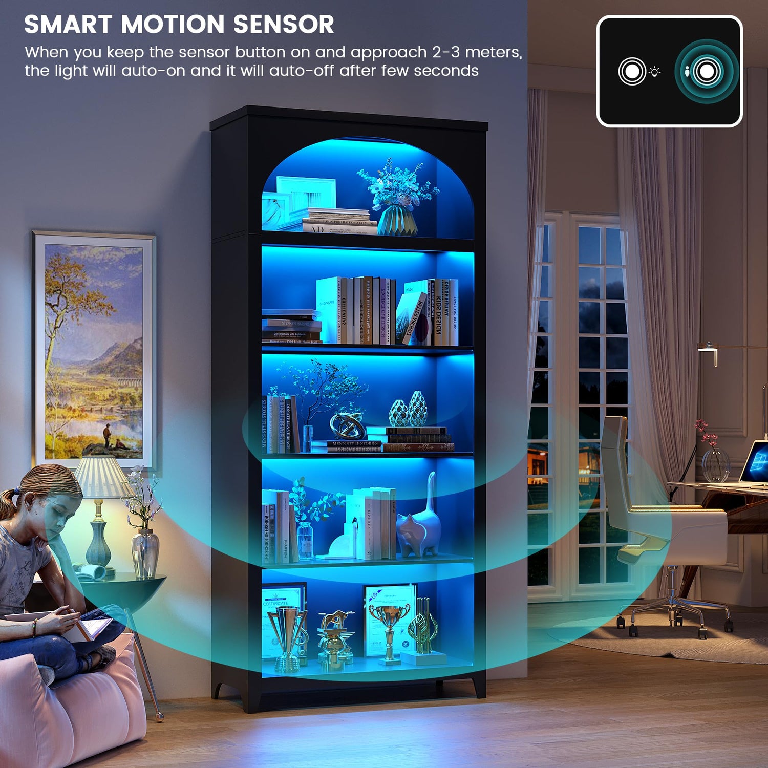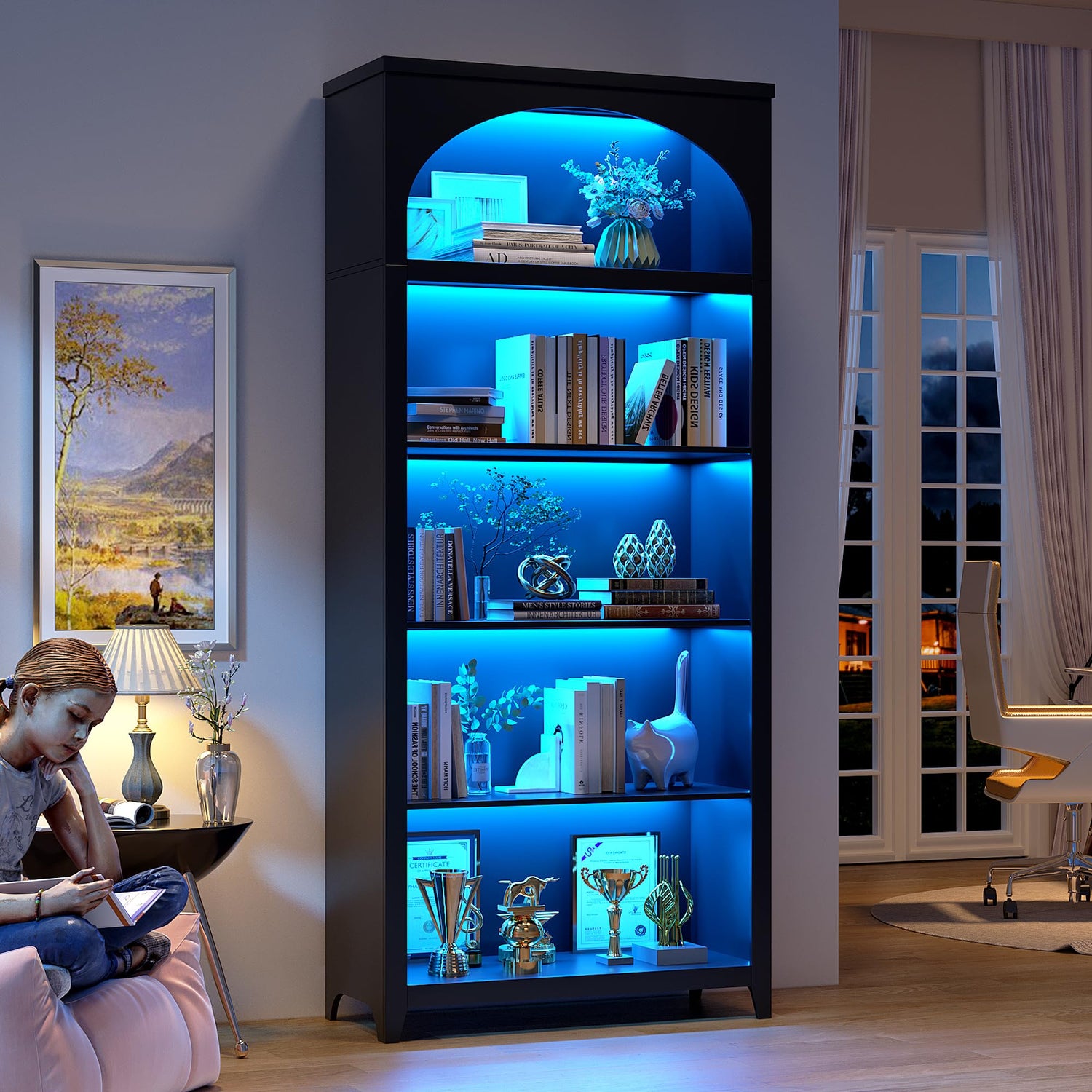 jajov 2pc Bookshelf with LED Light, 70“ Tall Bookshelves and Bookcases Floor Standing, 5 Tier Book Shelf Wooden Bookcase Multipurpose Bookshelf for Home Office, Living Room -Black
