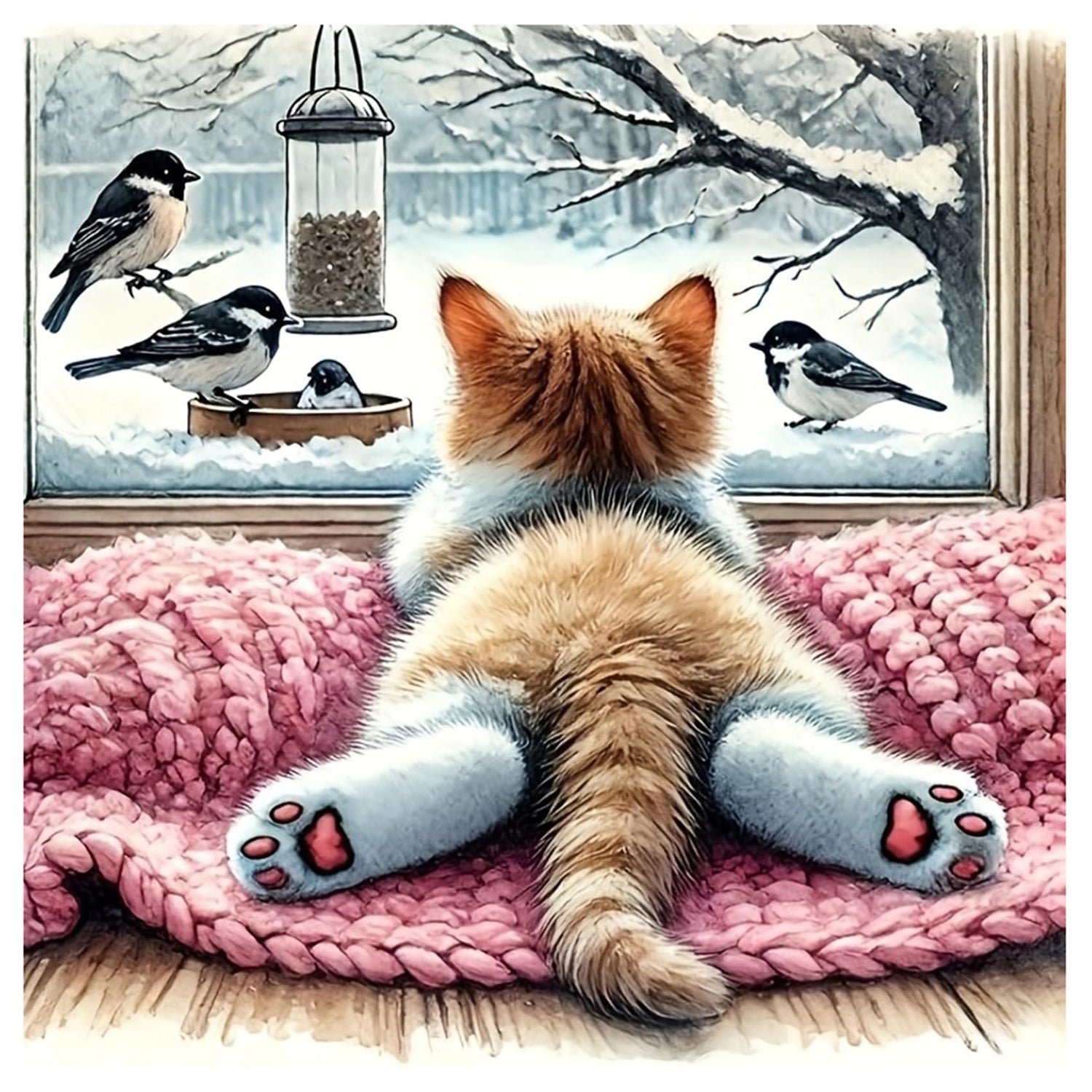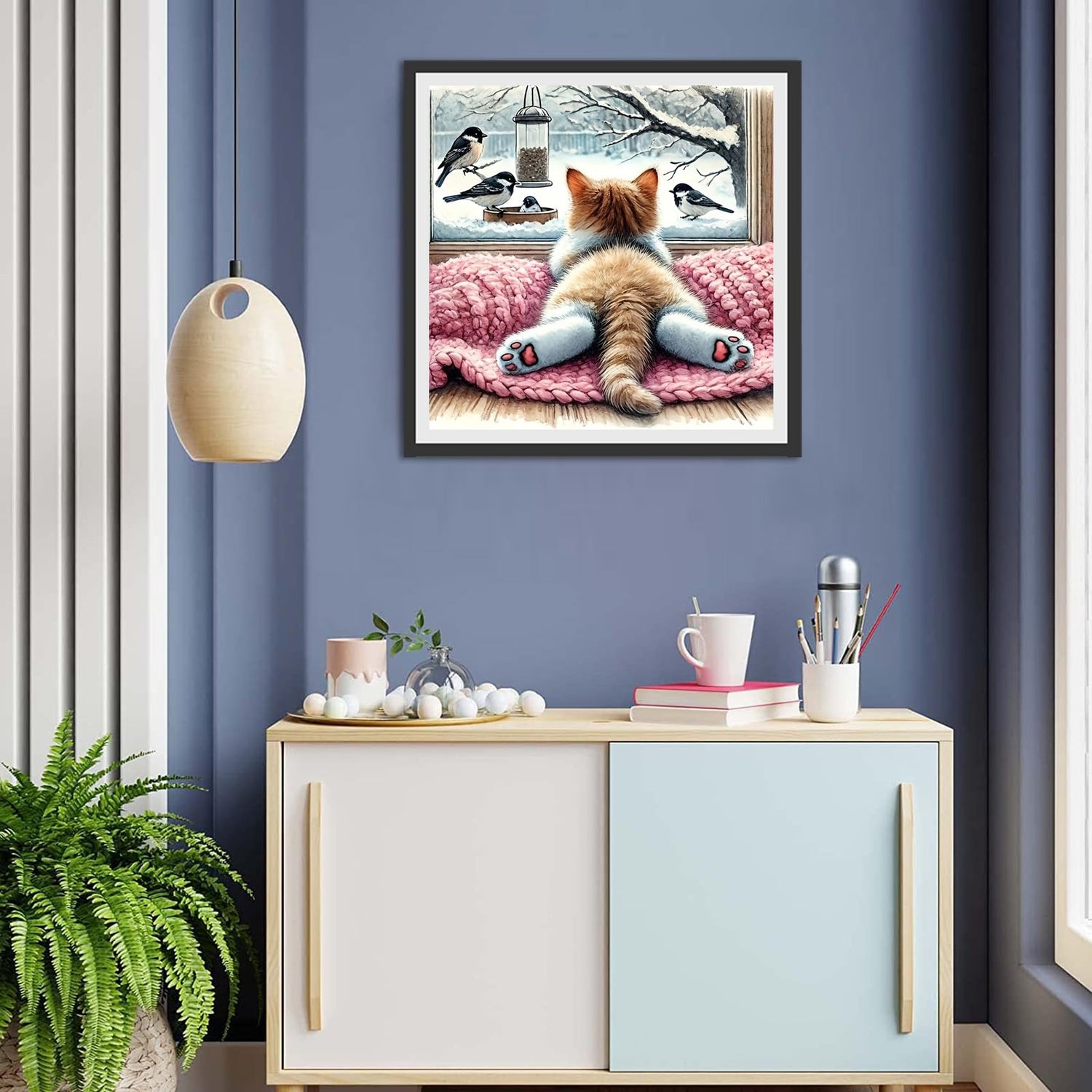 JAKI Cat Diamond Painting Kits for Adults Beginners-Animal Diamond Art Kit for Adults,5D DIY Gem Art Kits for Gift Home Wall Decor(14x14inch)