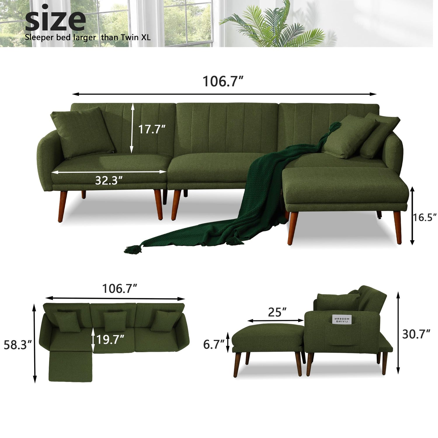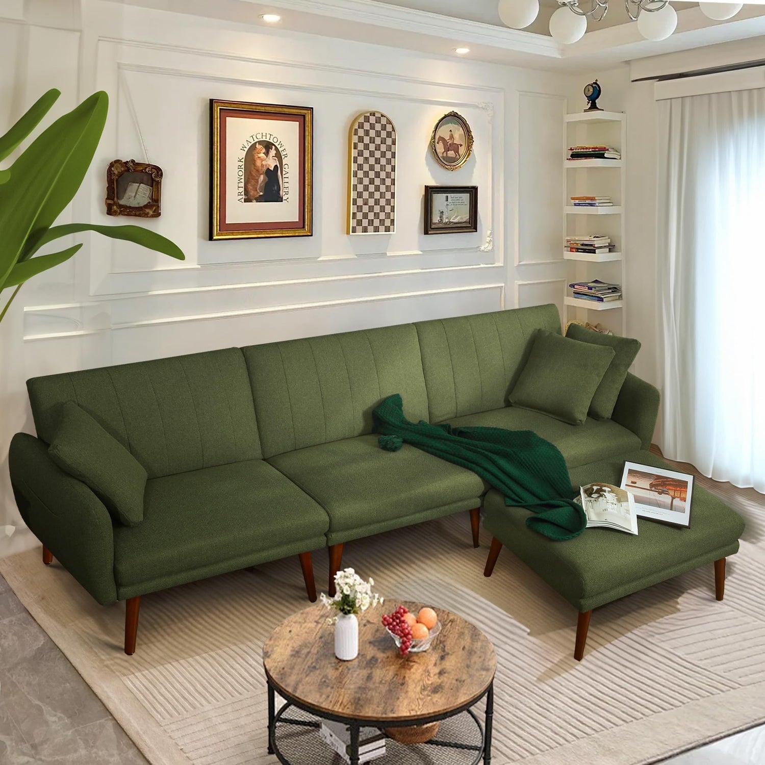 jamege Sectional Couch Sofa Bed, L-Shaped Linen Fabric Sofa Sleeper with Reclining Backrest and Removable Ottoman for Apartment Living Room