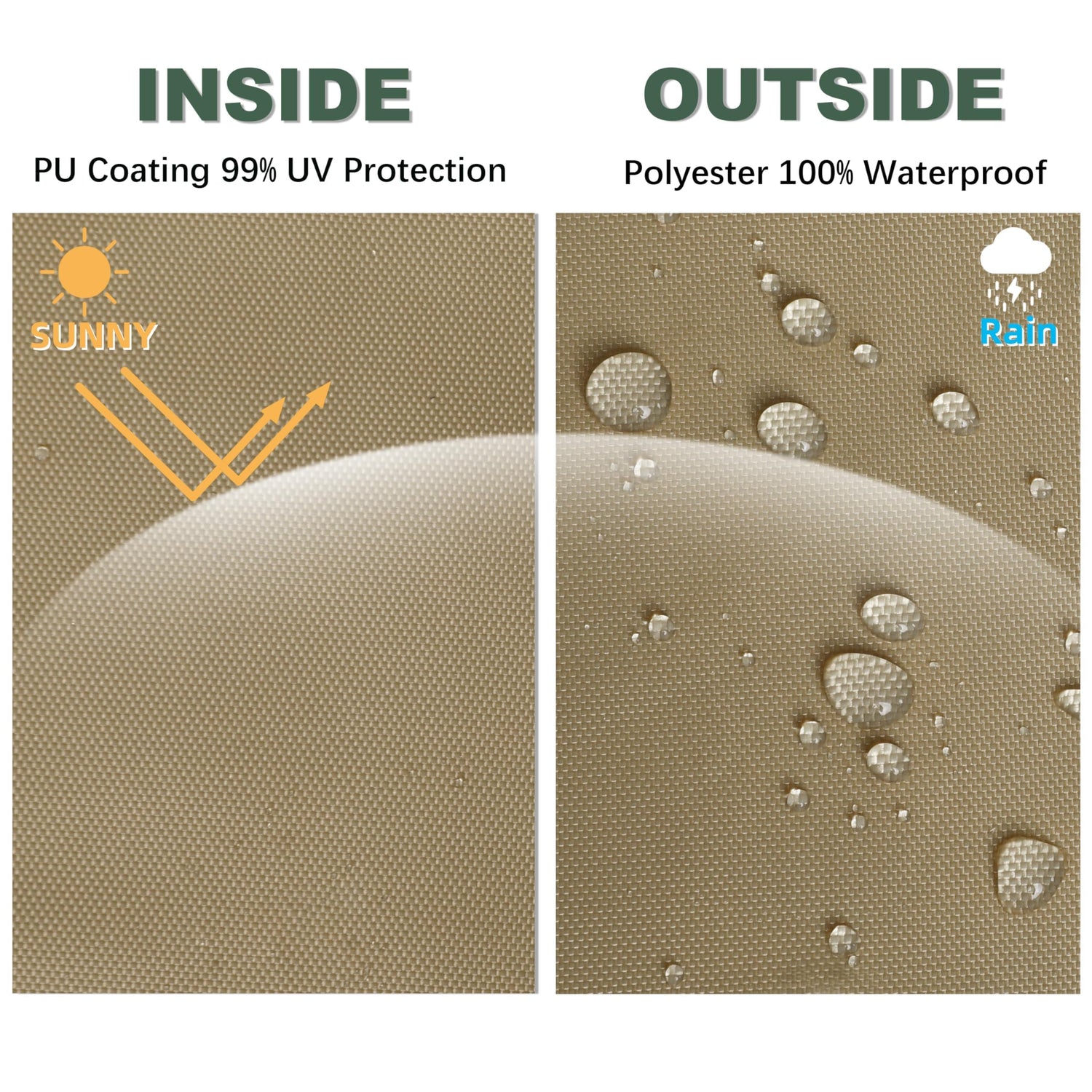 - Premium Material: full canopy cover adopt newest secure materials, more wear-resistant and tear resistant.Can withstand 1800mm water pressure, so that the canopy cover have better water resistance. PU coated is good at sunproof, anti-Uv, keeps cool in hot day, suitable for all season.