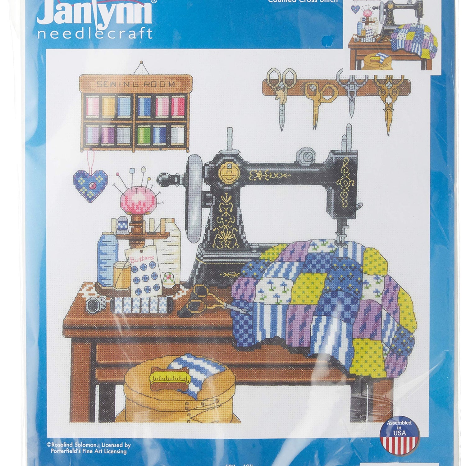 Janlynn 14 Count Antique Sewing Room Cross Stitch Kit, 12 by 12-Inch