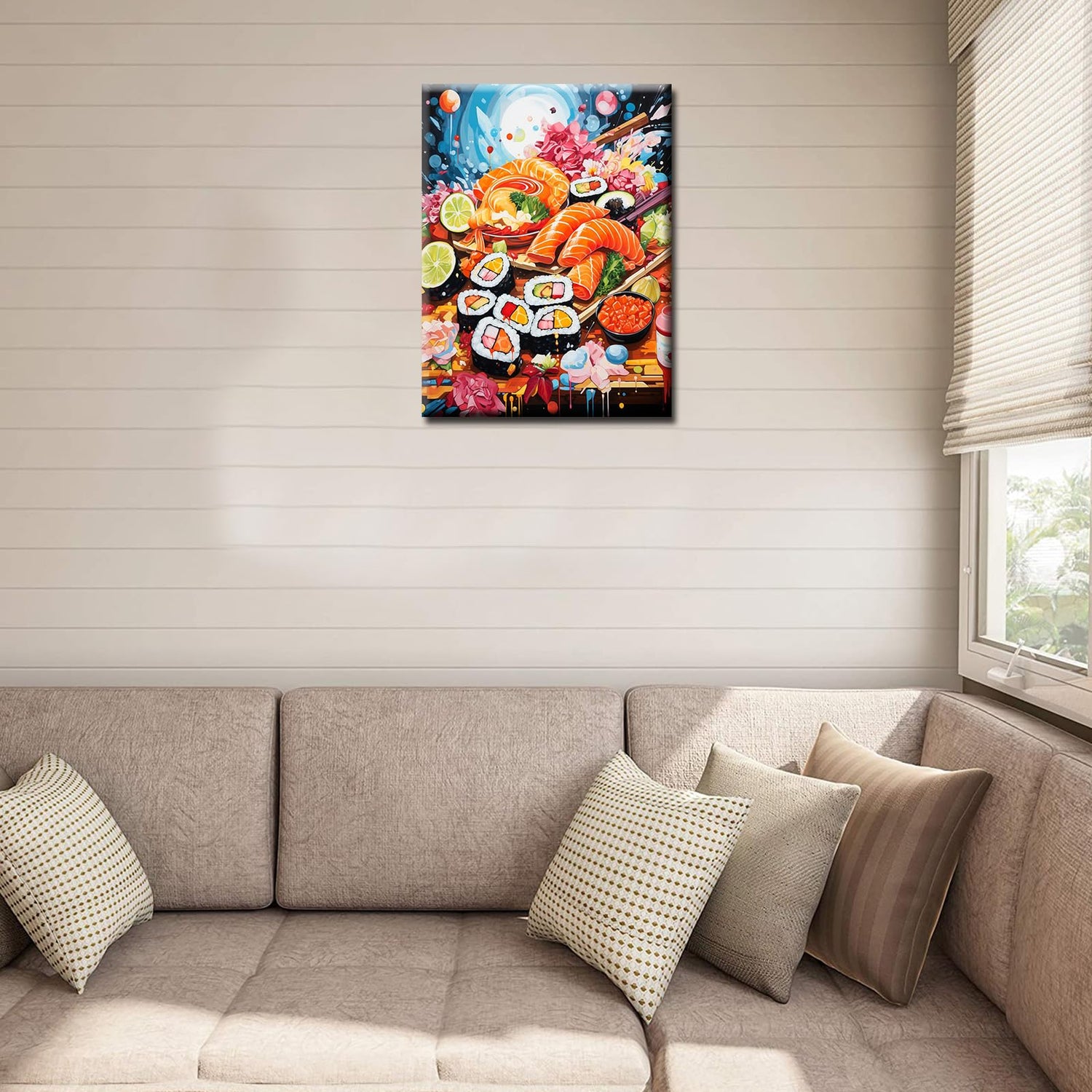 Japanese Cuisine Diamond Painting DIY 5D, Numbering Kit,Graffiti Delicious Sushi Artwork Lemon and Sakura Wall Art Food Crystal Rhinestone Pictures Fast Food Art Home Decor Adults Gift(12''Wx 16''H)