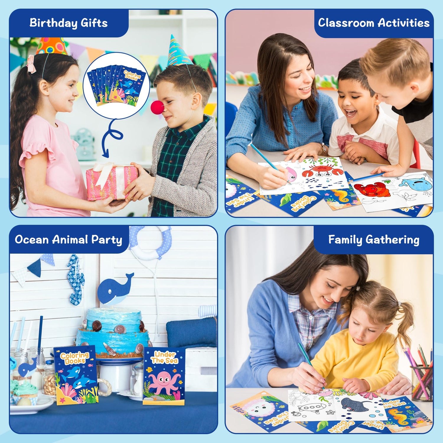 - Wide Application - These colouring books are suitable as gifts for kids' birthdays, holiday gifts, ocean animal theme parties, or as a work for DIY painting games or as a classroom reward. Whether it's between friends, classmates or parent-child activities it can be used as a bonding aid to draw and communicate together.