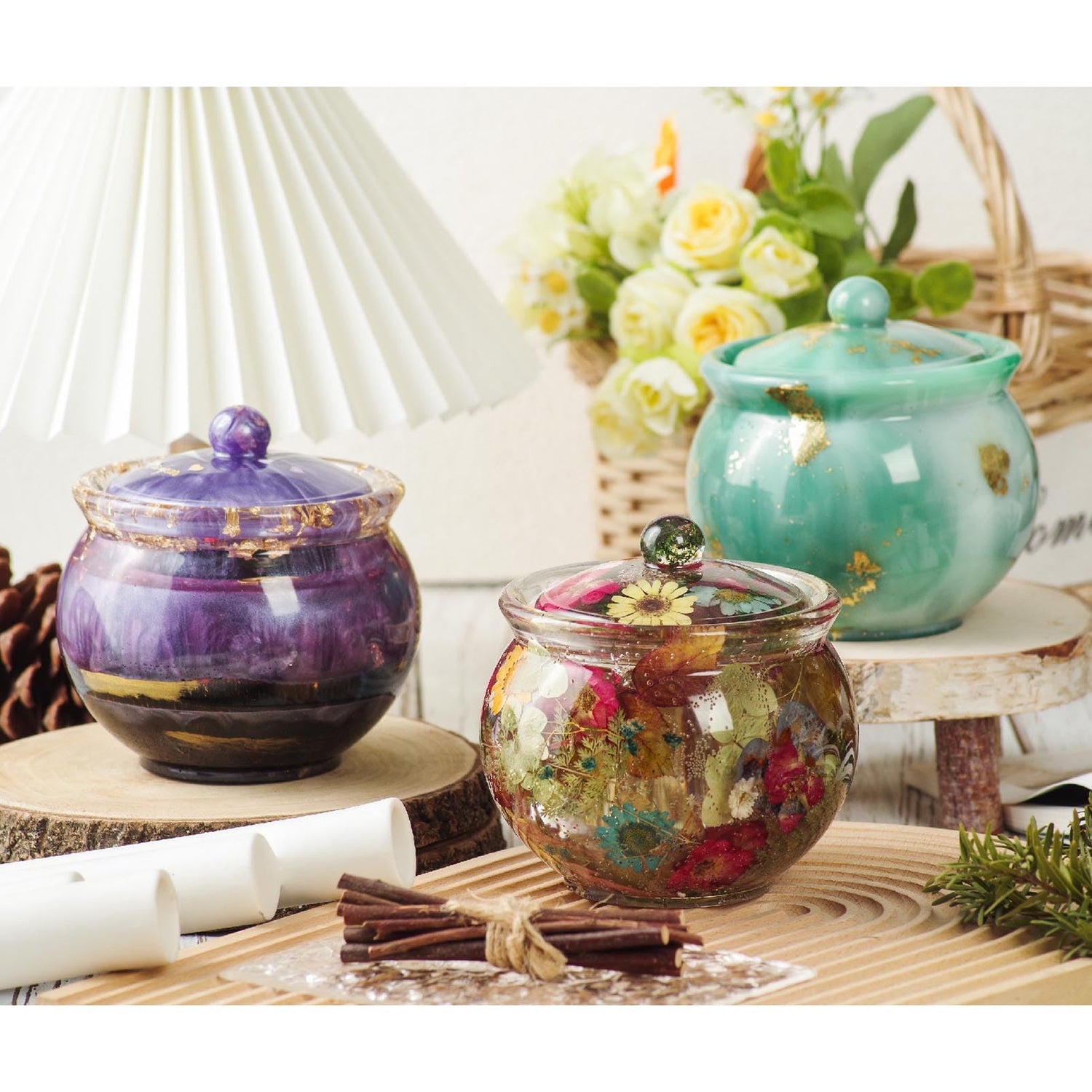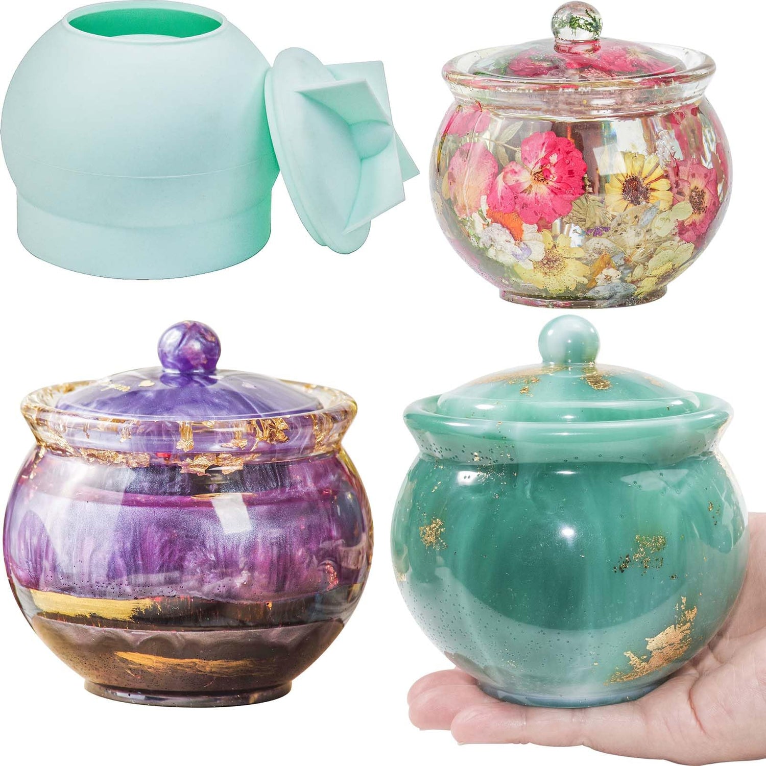 - 【Good Compatibility & Wide Application】These jar molds are compatible with many casting materials, especially good for epoxy resin, polyester, clay, etc This jars molds can also be DIY with dried flowers, crystals, mica powder, glitter and natural elements to make beautiful and cute jars. The jar silicone resin molds can be used as jewelry organizer, storage box and container for different small items.
