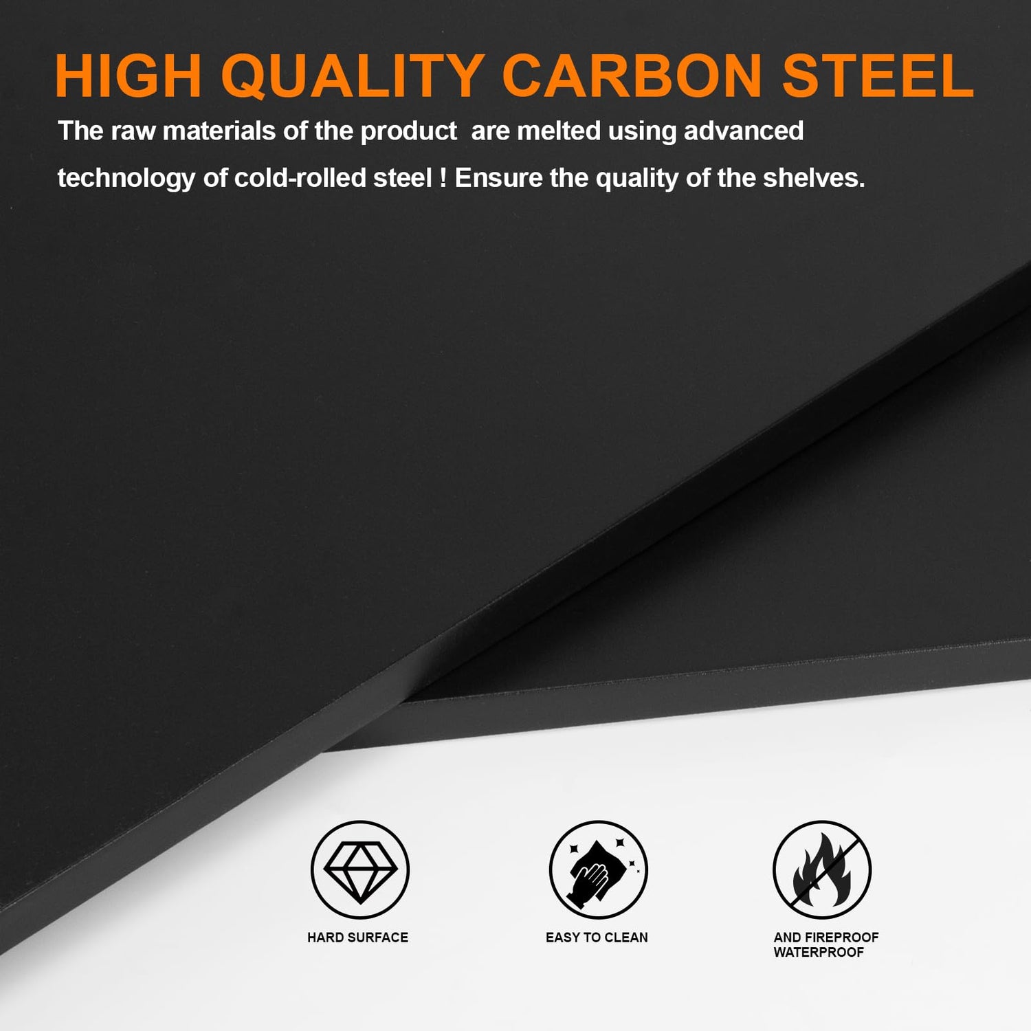 Adjust each tier’s height (18”-31.5” range) to accommodate tall items like paint cans or stackable bins. The tool-free slotted design ensures quick assembly—simply connect the columns, beams, and steel panels. Included plastic corner feet add floor protection and prevent shifting.