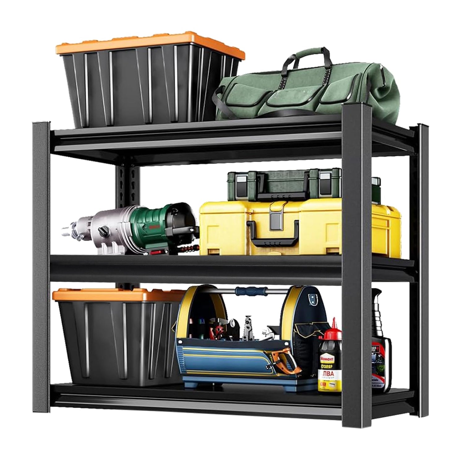 Jarbalai Black 3-Tier Heavy Duty Steel Shelving Unit, 1000 LBS Capacity Garage Shelving, Adjustable Storage Rack, 31.5" L x15.75 W x31.5 H, Industrial Shelves for Garage, Workshop, Home Organization
