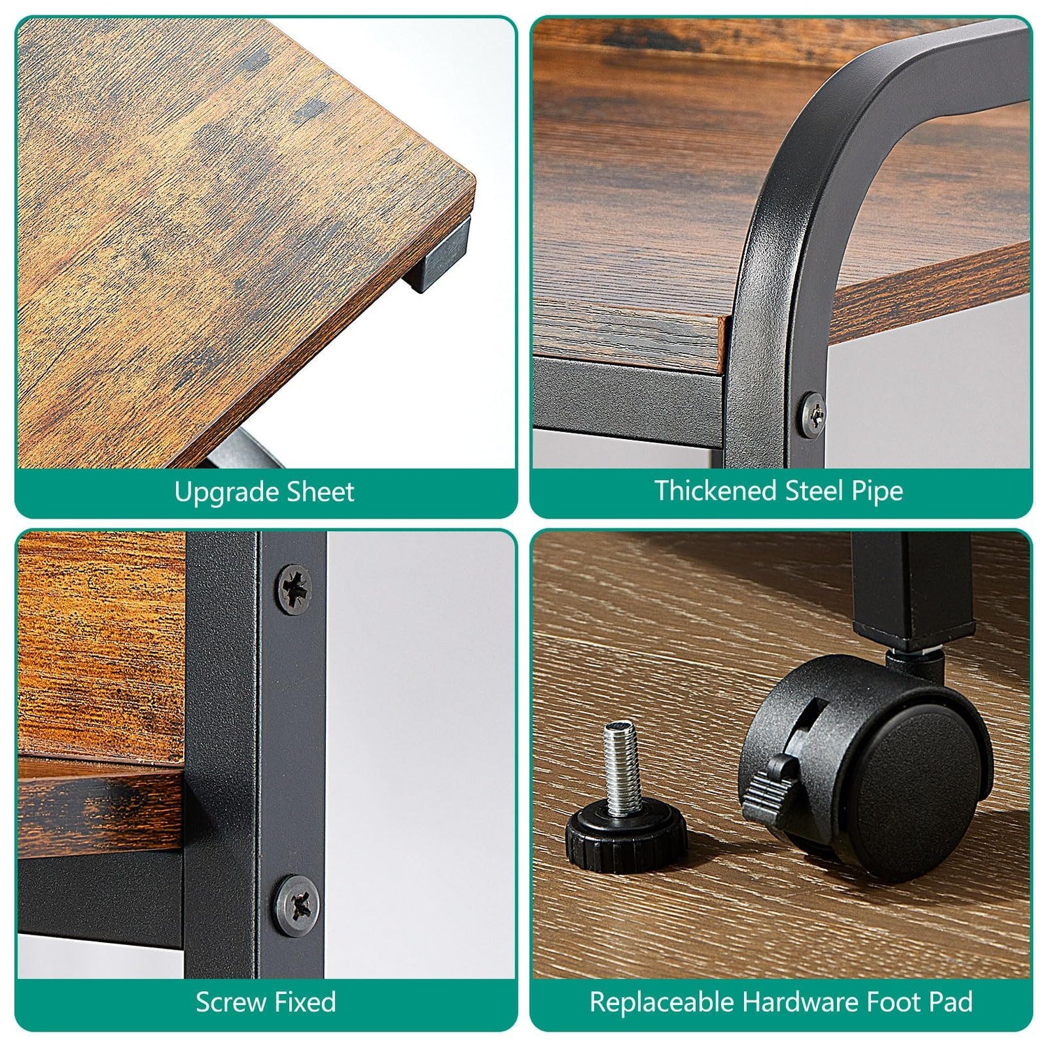 - 【Adjustable Height】The height of the middle shelf of this printer table can be adjusted in 5 levels, allowing you to customize the space between the top and middle shelves to accommodate items of different sizes. Not only can it be used as a printer stand, but it can also be used as a bedside stand, kitchen cart, sofa table, plant stand
