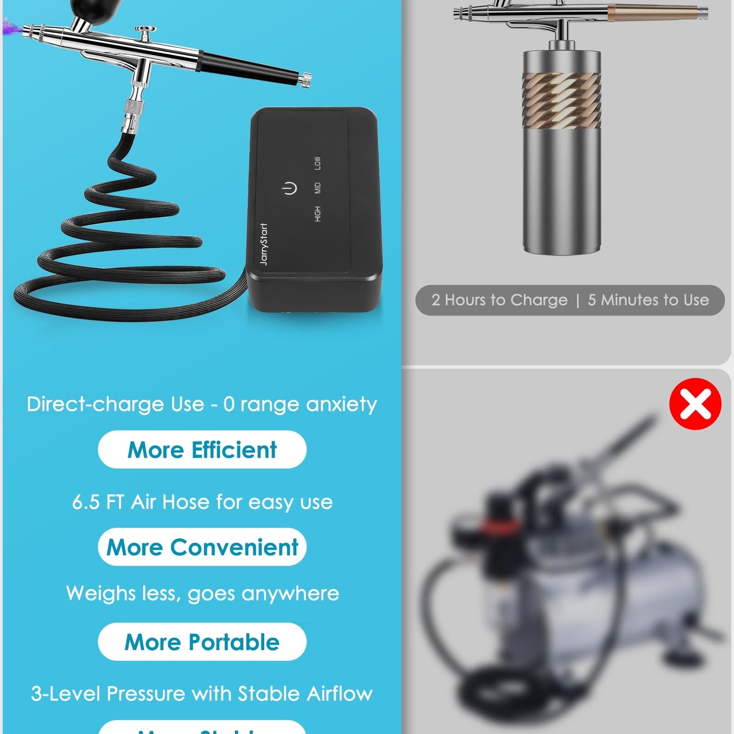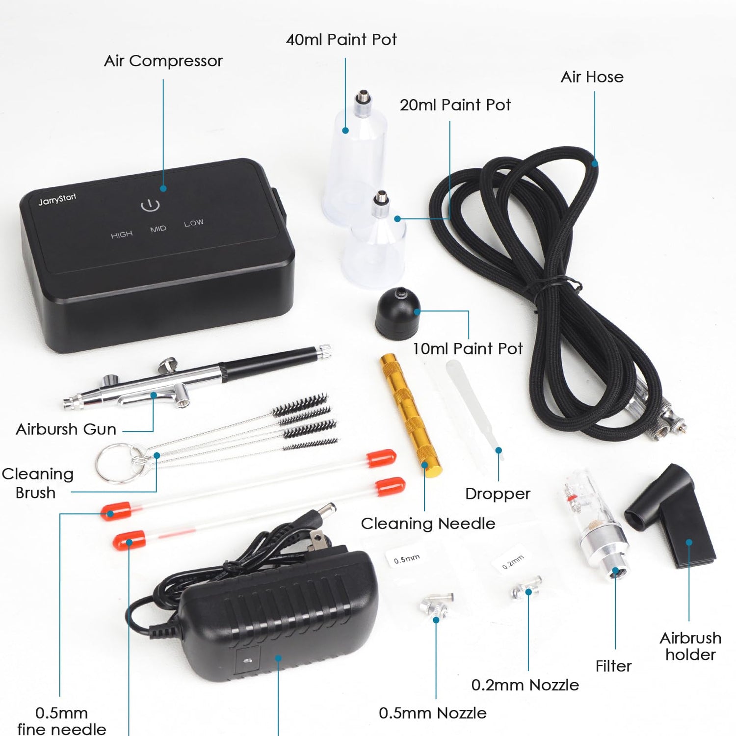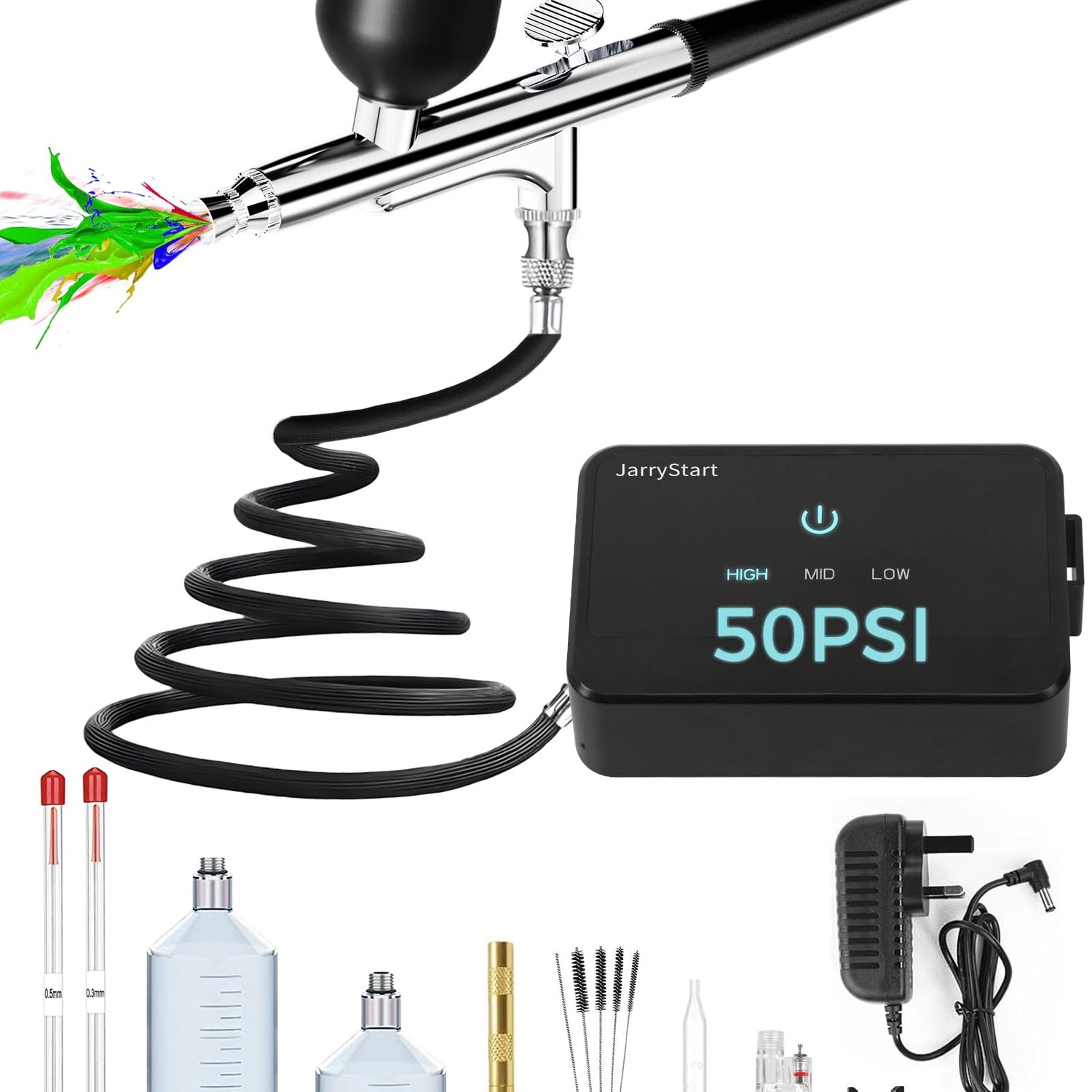 JarryStart Airbrush Kit with Air Compressor, Intuitive 50 PSI High Pressure Air Brush with 0.2/0.3/0.5mm Nozzles & Cleaning Sets, Perfect for Modeling, Painting, Nails, Makeup, Cake Decorating