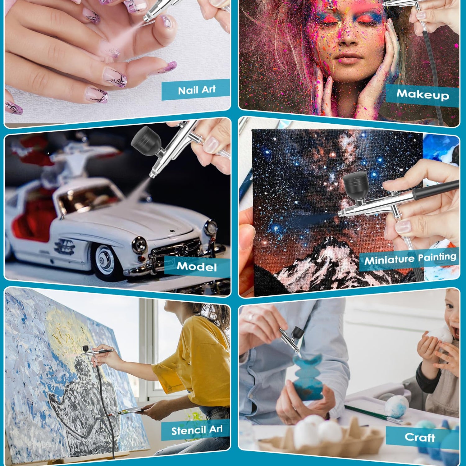 - đăEasy to Use and CleanăThe air brush painting set comes with a dedicated cleaning tool to help you easily remove residues and prevent nozzle clogging. It also includes a detailed user and cleaning manual, making it quick and easy to use for both beginners and professionals.