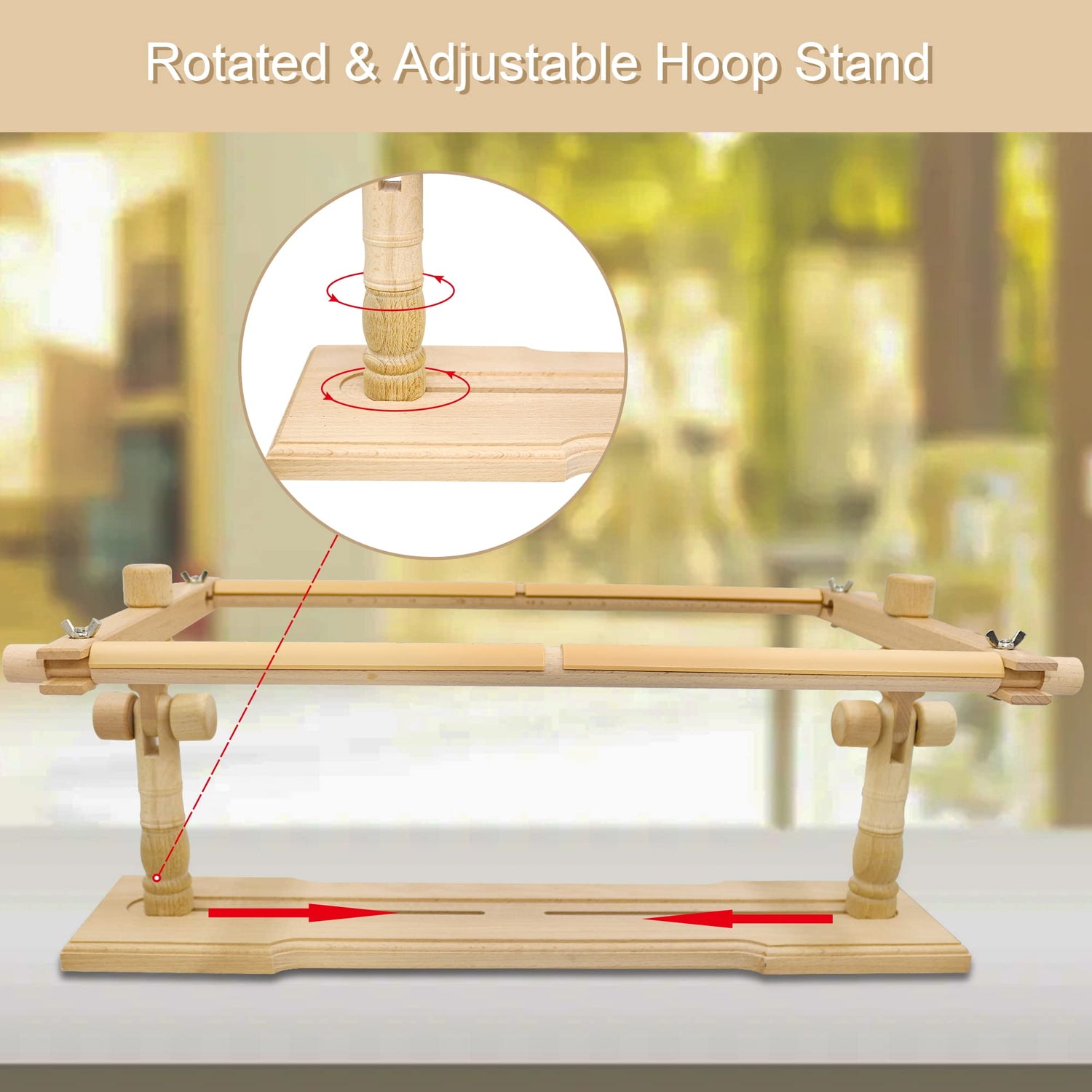 Jasvelly Rotated Embroidery Frame Stand - Adjustable Cross Stitch Scroll Frame, Beech Wood Quilt Frame Needlepoint Holder Floor Table Lap Stand for Stitching Sewing Craft (983312)