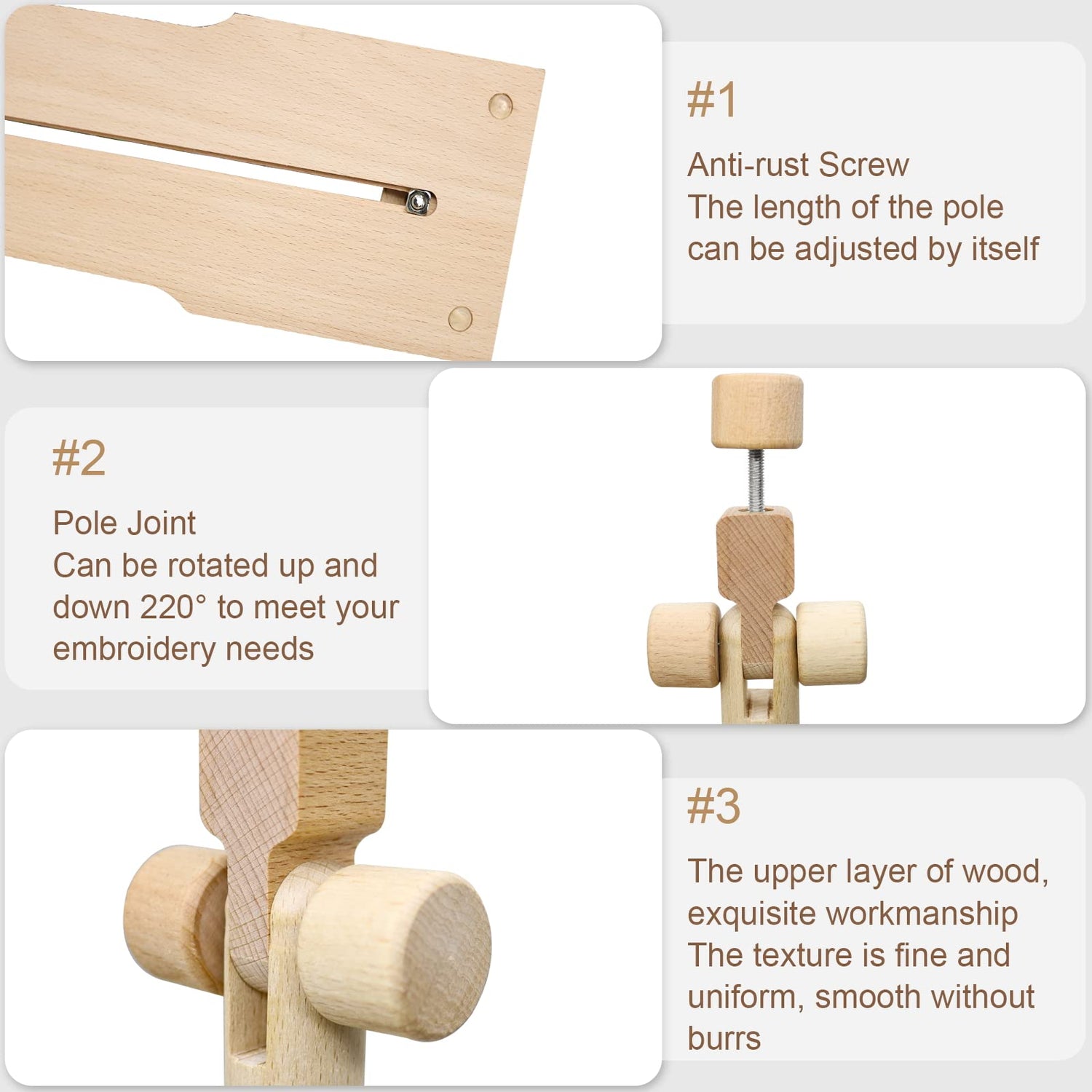 Details: Rotated Embroidery Frame Stand - Adjustable Cross Stitch Scroll Frame, Beech Wood Quilt Frame Needlepoint Holder Floor Table Lap Stand for Stitching Sewing Craft