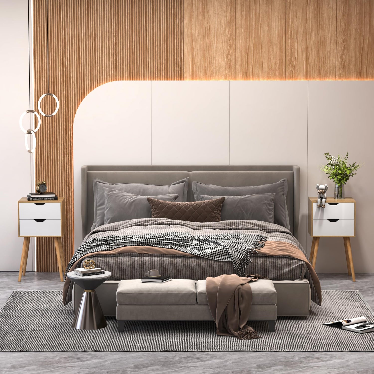 JAXPETY Nightstands Set of 2, Night Stand with Drawers, Bedside Tables with Solid Wood Legs and Large Storage Space, End Table, Side Table, for Bedroom, Natural