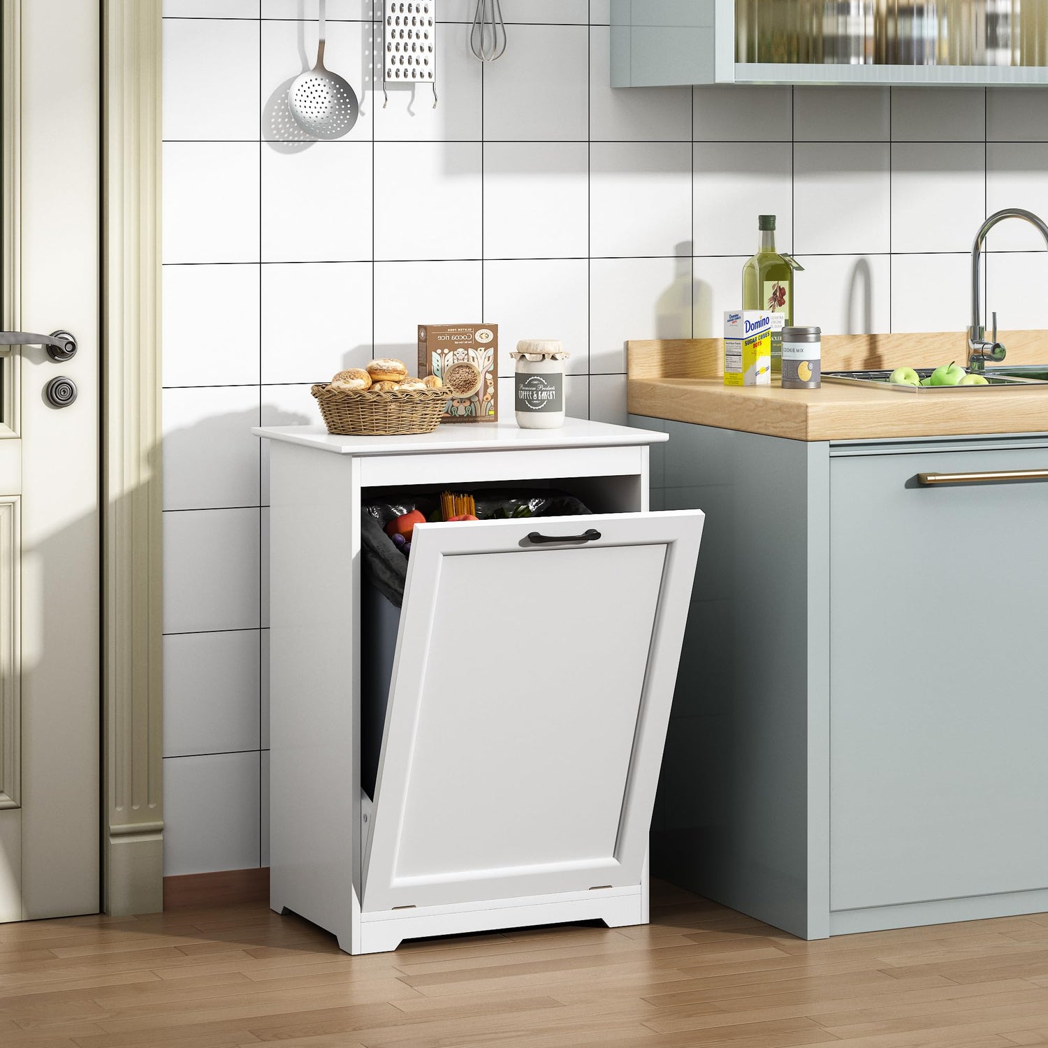 JAXPETY Tilt Out Trash Cabinet Kitchen Trash Can Holder Wood Laundry Hamper Recycling Trash Cabinet with Angle Adjustable Door, White
