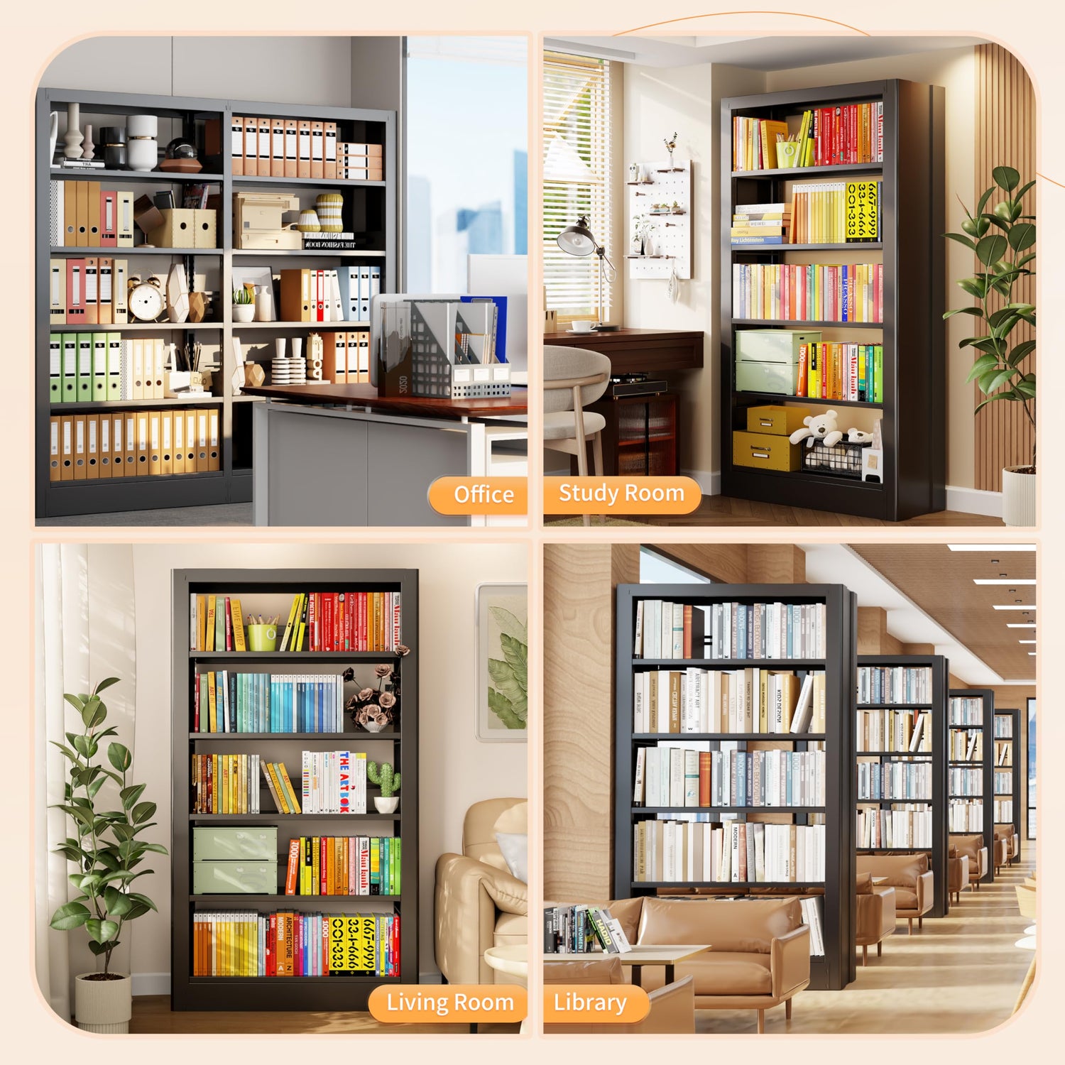 - STURDY and DURABLE: This office bookshelf is made of high-quality steel, solid structure and excellent load-bearing capacity, enough to support many books, decorations, and other heavy items. Through special surface treatment technology, the surface of the metal book shelves for office is not only smooth but also excellent waterproof, which is easy for daily cleaning and maintenance. The 5 tier bookshelf's durability combined with its versatile design makes this metal bookcase tall an ideal choice to enhance your home or work environment