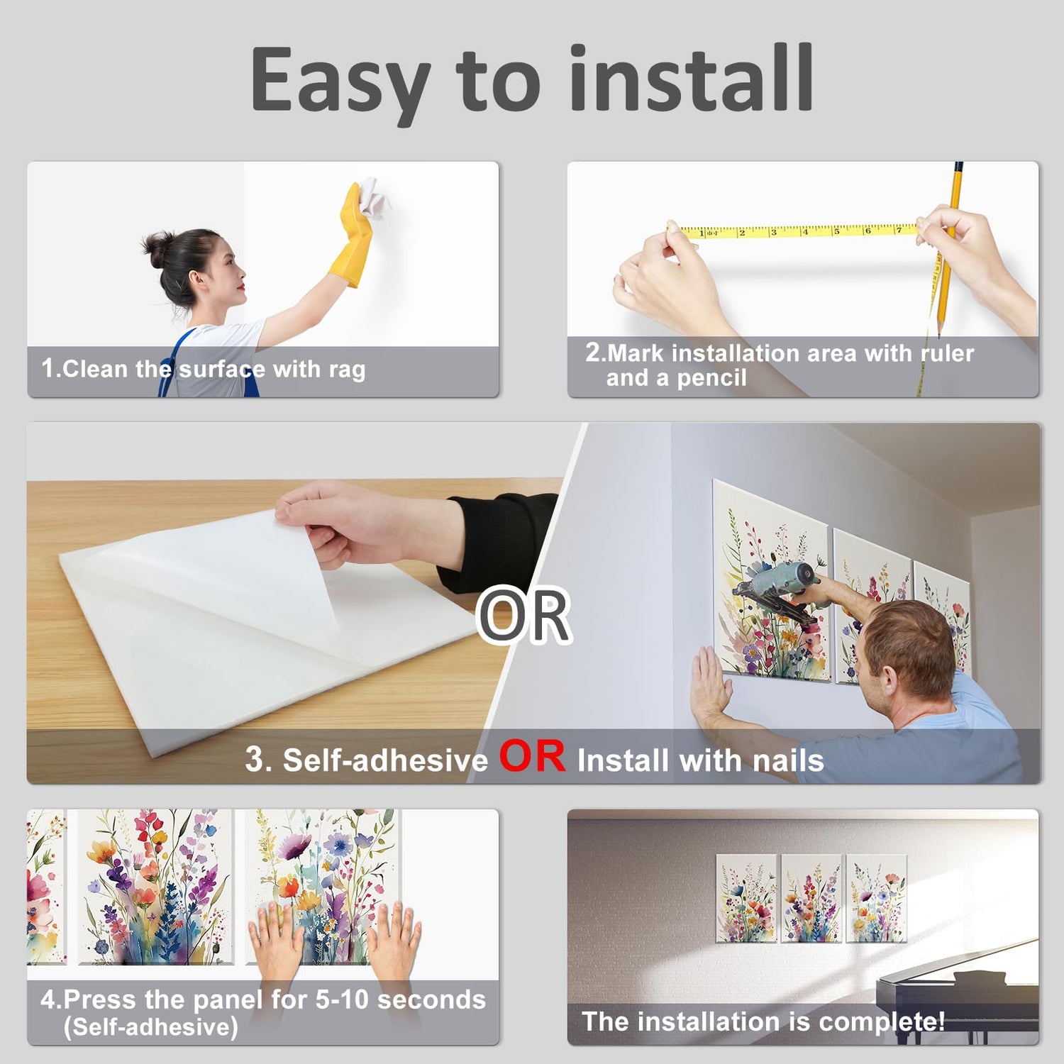 - [Wild Flowers Wall Art] Wall art prints (No Frame Required) size is 17.1" x 11.8"x0.4"x3 pieces. This home decoration wall artwork is printed on high-density fiberboard using UV printing technology to ensure a clearer and more vivid image.