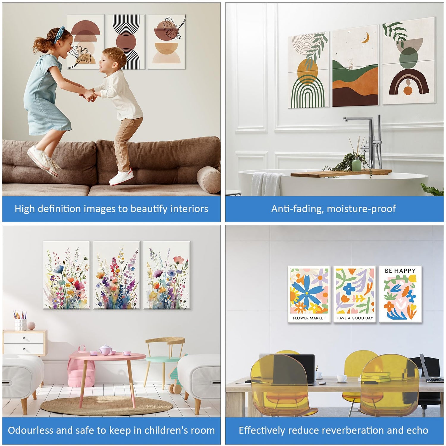 - [High-Quality Wall Decoration] This wall decoration painting is made of environmentally friendly material and sound-absorbing high-density fiberboard, which can easily and effectively reduce reverberation and echo. At the same time, it is more durable than traditional canvas paintings, not easy to deform, waterproof and fireproof, anti-ultraviolet, indoor anti-fading, moisture-proof, and without any peculiar smell (It is also safe to put in children's room).