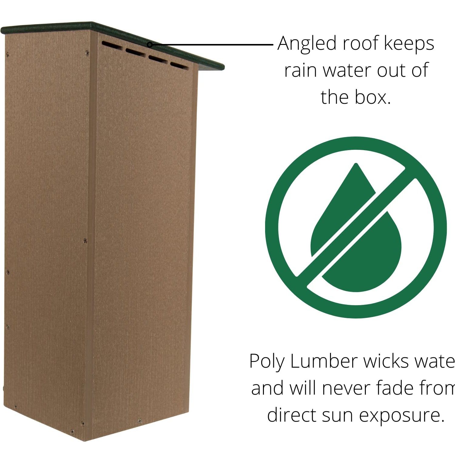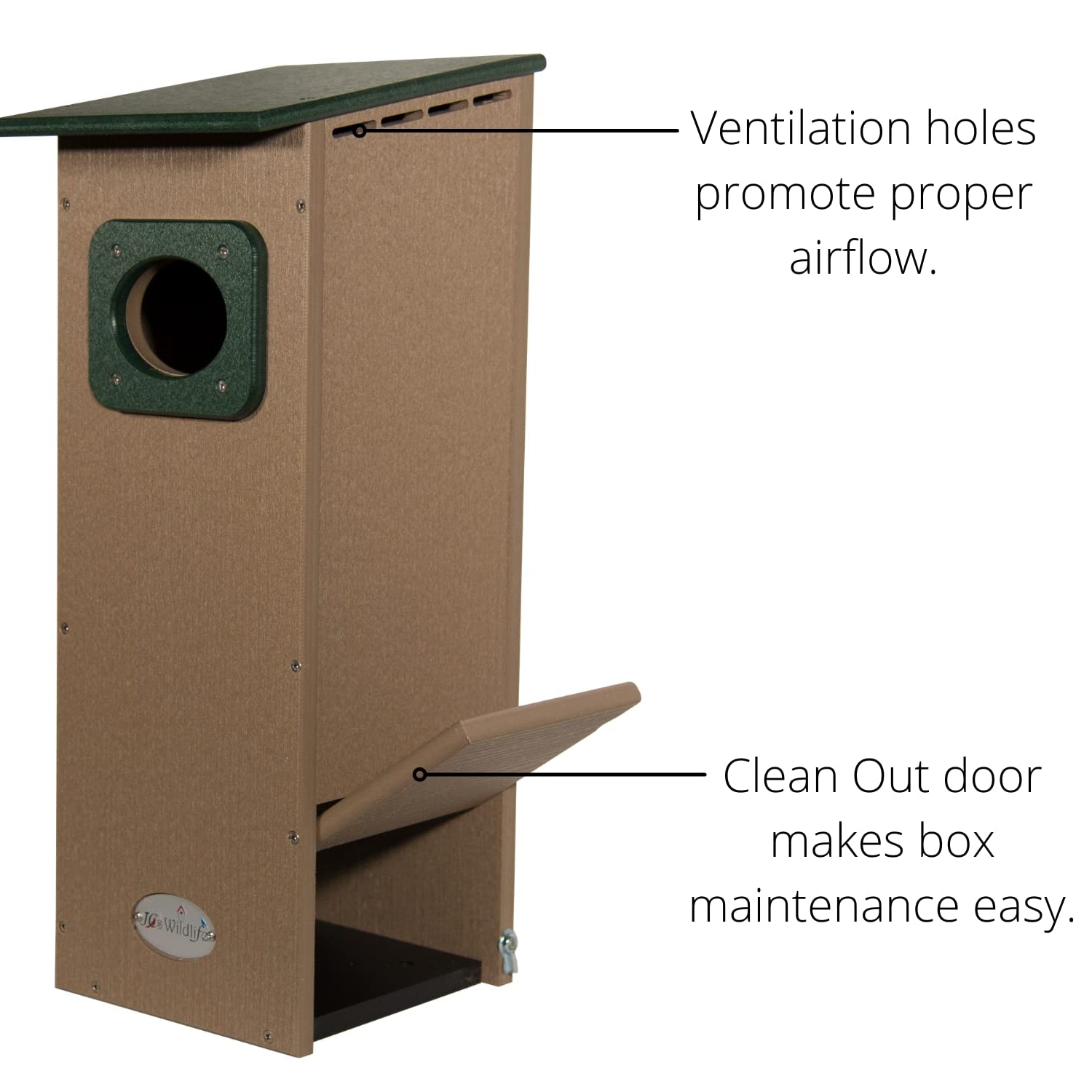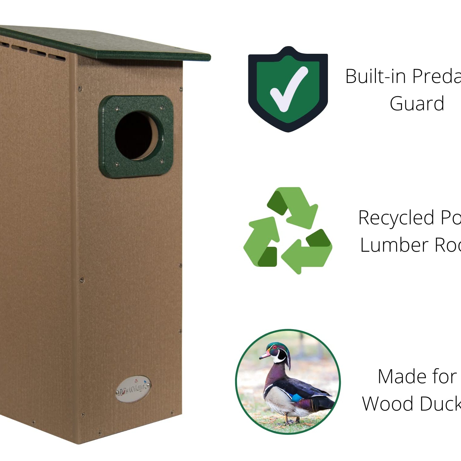 - Welcome your feathered friends with the JCs Wildlife Poly Lumber Wood Duck House!
