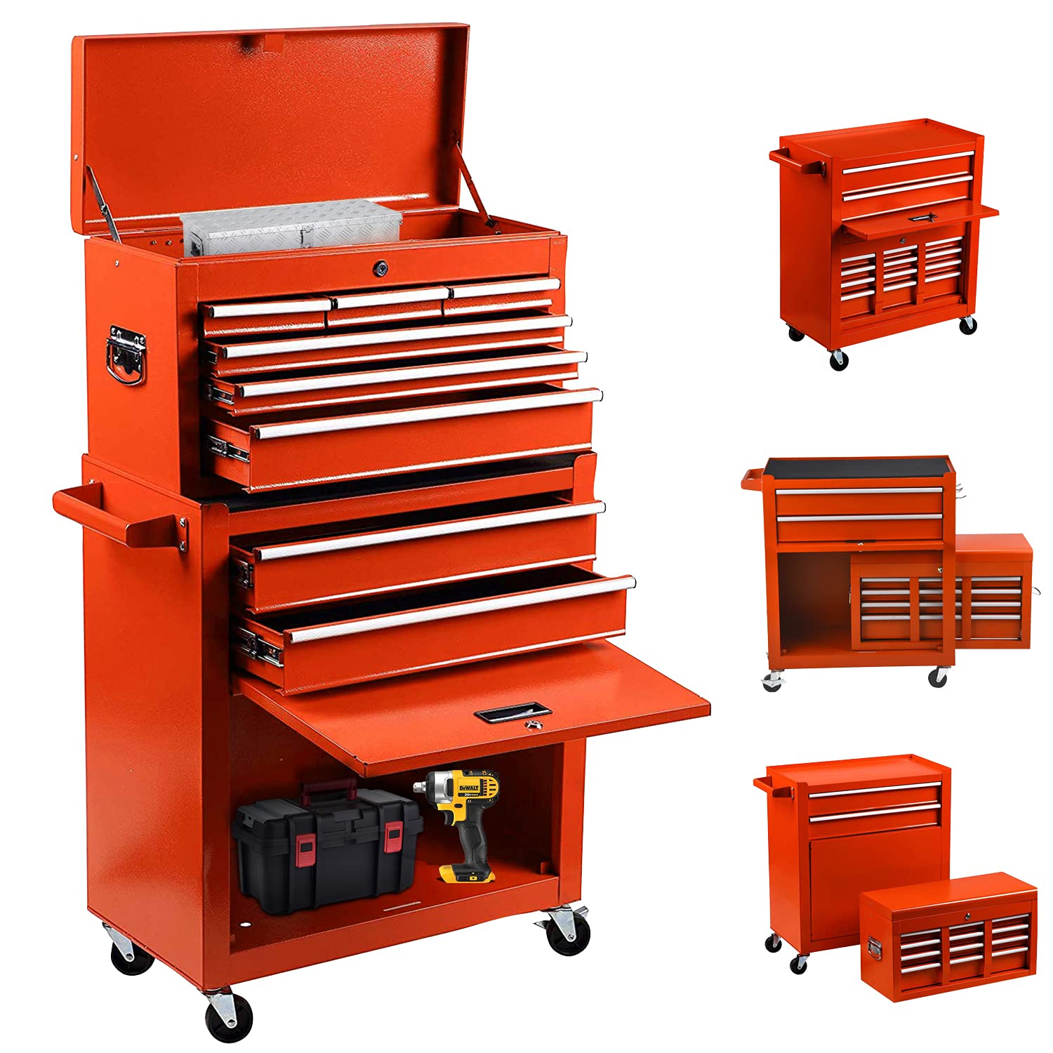 - 👍【 LARGE STORAGE】: The tool chest has 8 drawers that make it easy for you to store different tools and use them at your fingertips. The tool cabinet at the bottom has a lot of space and you can put a lot of things in it. The two-in-one design is portable and can store a lot of things at the same time.