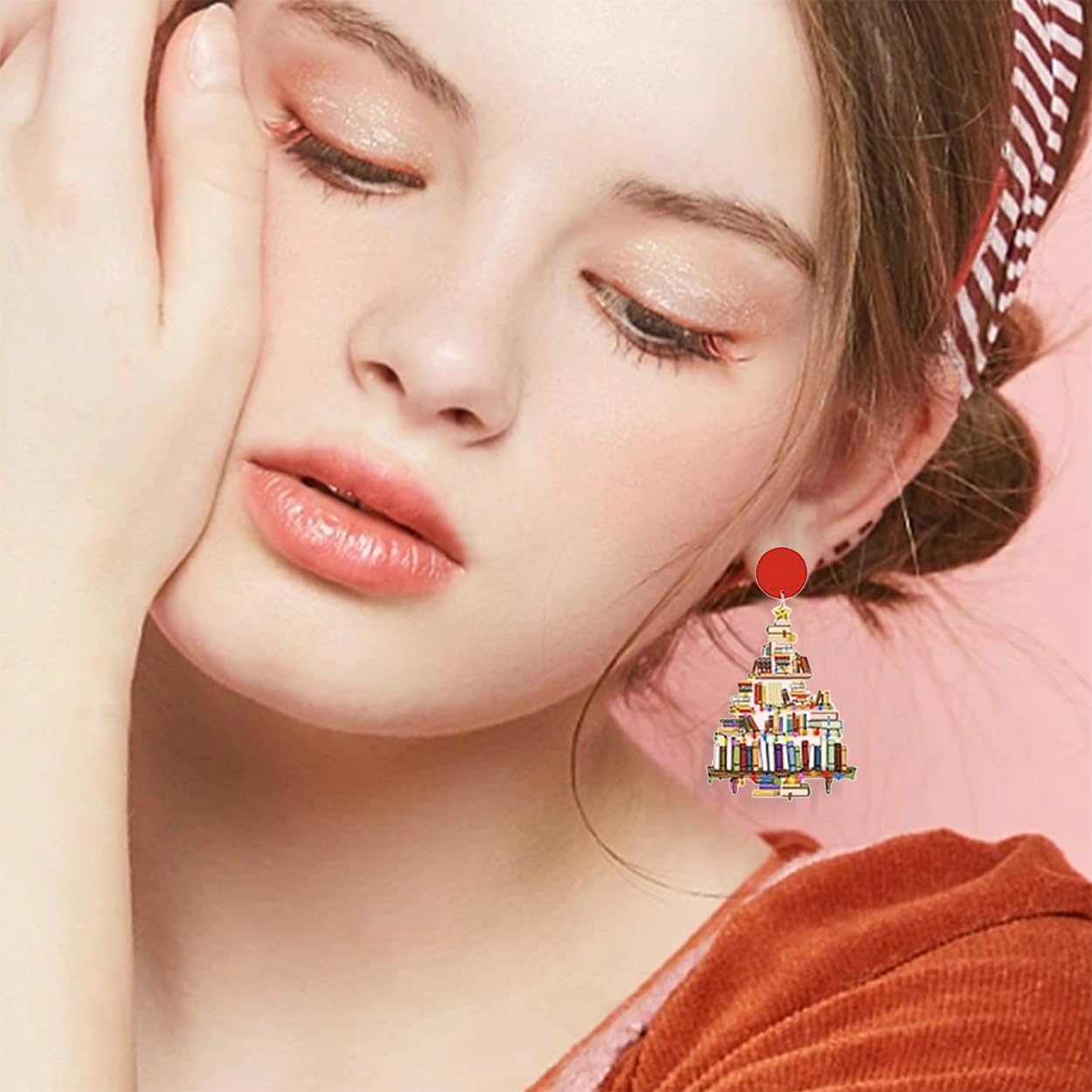 - Funny vintage wooden Christmas drop dangle earrings set, a set of 4 pairs of classic retro earrings, including Santa Clause and book trees, which is both elegant and eye catching.