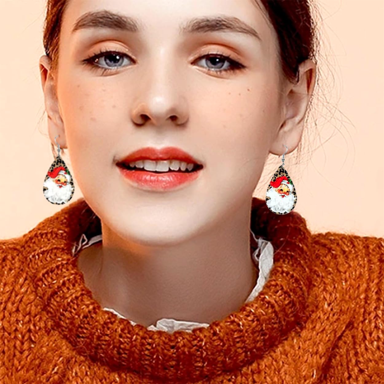 JeanBeau 4 Pairs Christmas Wooden Santa Dangle Drop Earrings Bulk for Women Cute Holiday Earrings Lightweight Wood Round Stud Xmas Book Decoration Accessories Jewelry Gift