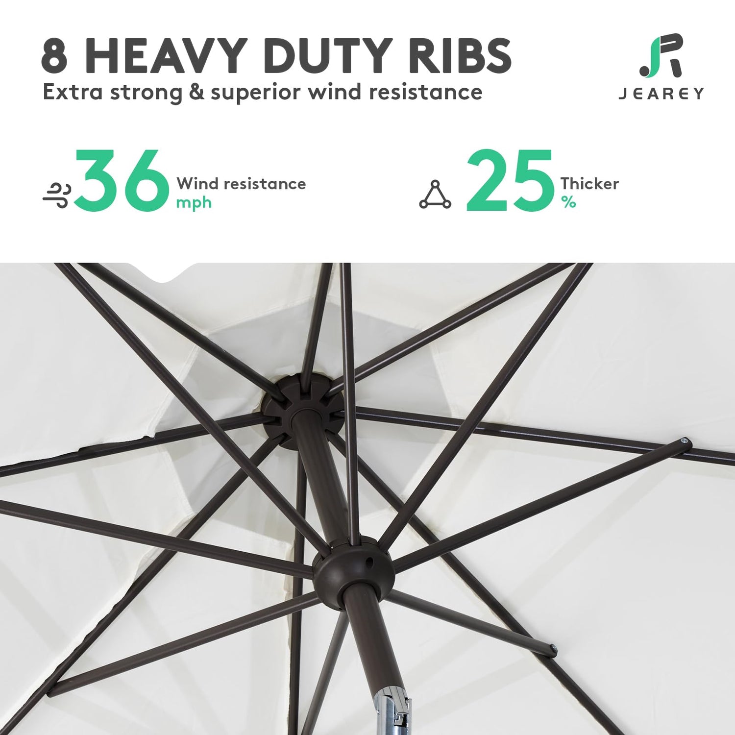 JEAREY 10FT Outdoor Patio Umbrella Outdoor Table Umbrella with Push Button Tilt and Crank, Market Umbrella 8 Sturdy Ribs UV Protection Waterproof for Pool, Garden (Creamy-white)