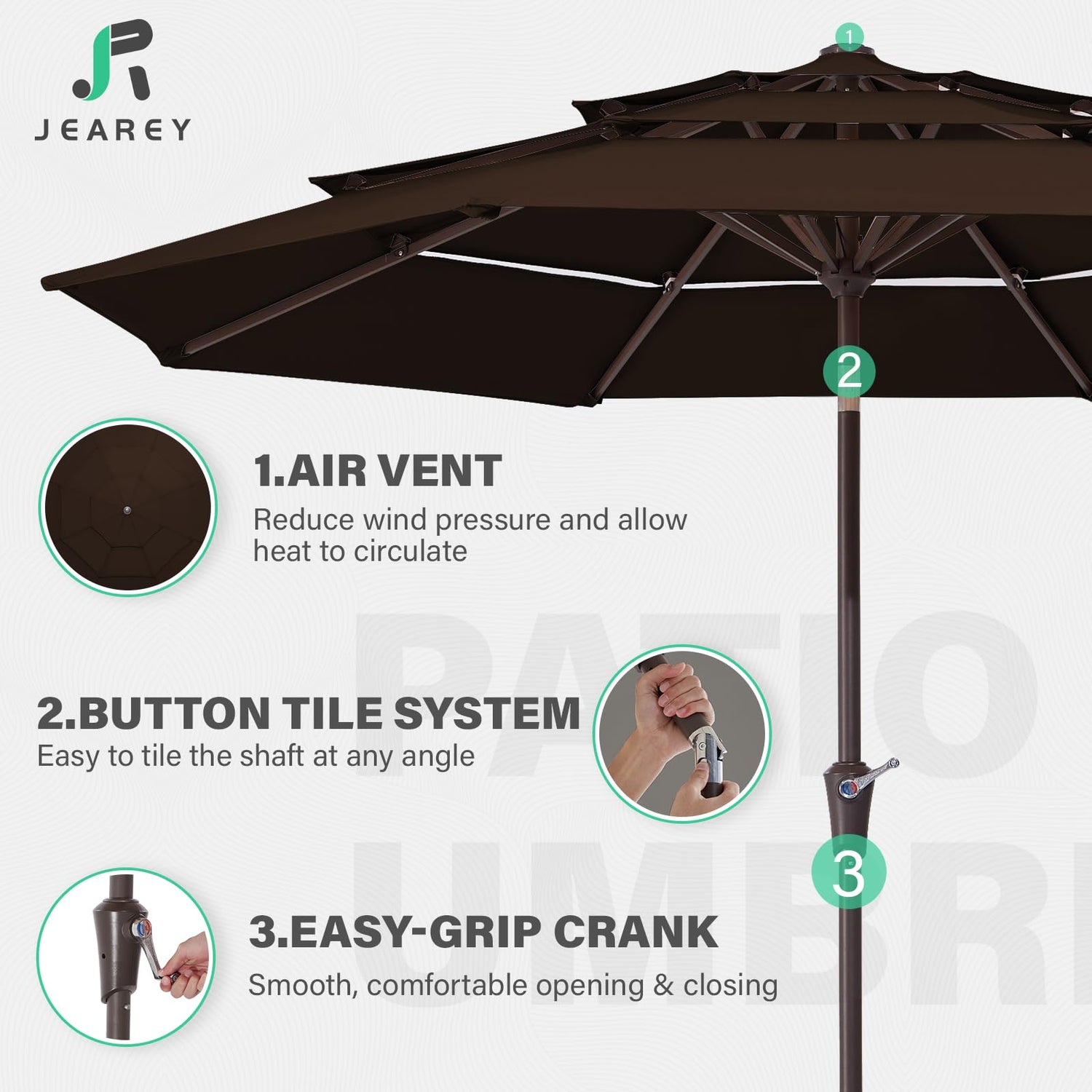 JEAREY 9FT 3 Tier Patio Umbrella Outdoor Market Umbrella Table Umbrellas Sunbrella with Button Tilt and Crank UV Protection Outside Garden Pool Umbrella,Coffee