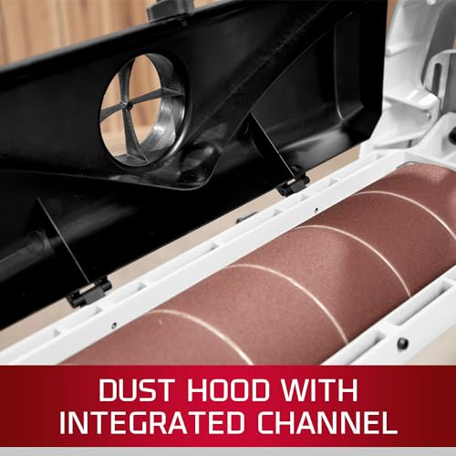 - Dust hood includes an integrated channel that mirrors the shape of the drum and directs chips and dust to the 4" collection port