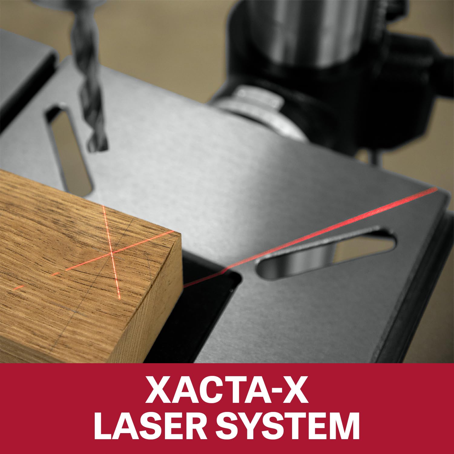 - 14" x 19" precision-ground cast iron work table features twin T-slot grooves and four table slots