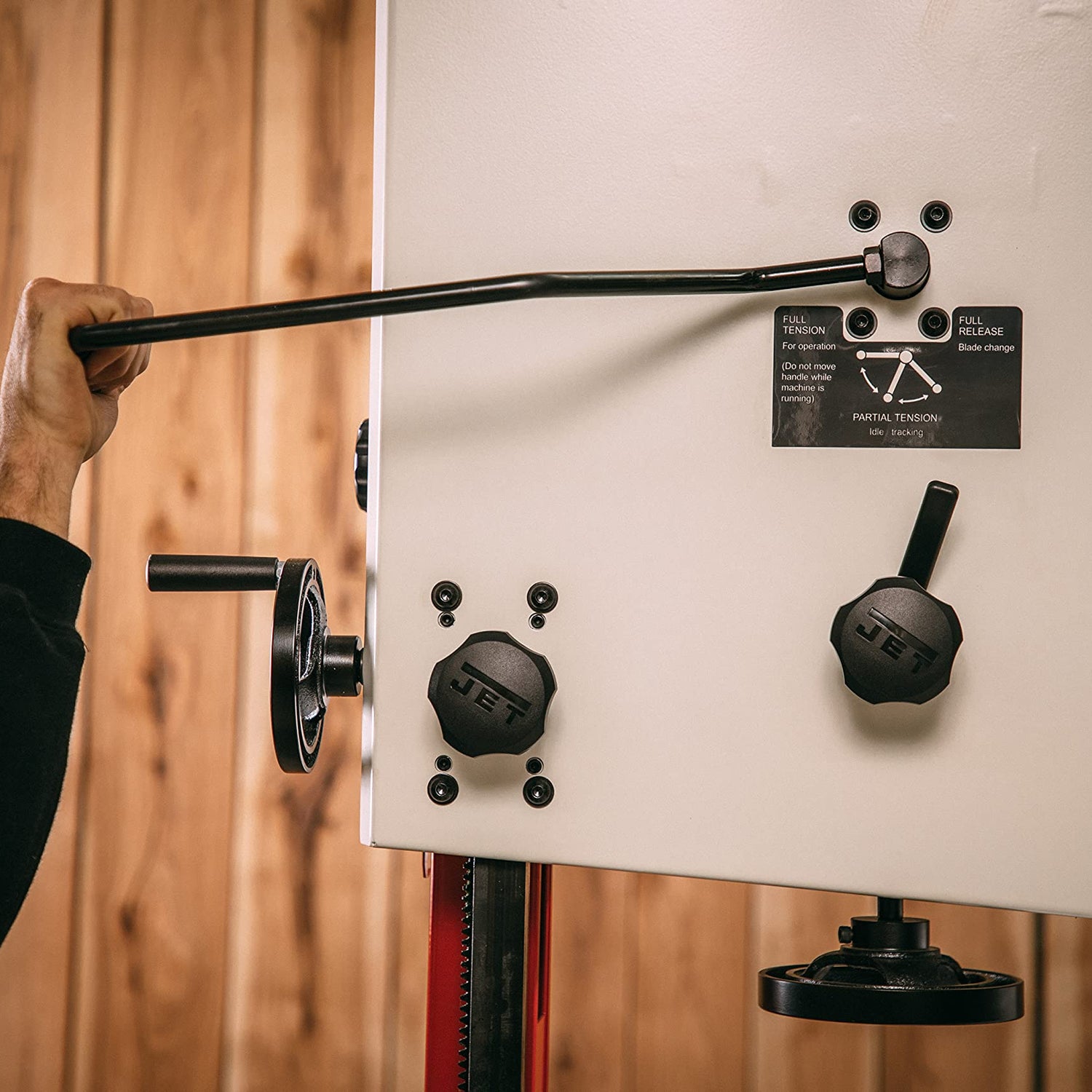 Designed to perform, the Jet 20" bandsaw delivers more re-saw capacity, greater throat depth and the horsepower you need to tackle bigger boards, create smoother edges and Master the intricate cuts. The heavy-duty cast-iron fence system is built to give you the Sturdiness and support you need for every project and features a micro-adjust dial for exact placement. The table is slotted and the guide Post has a stress-free magnetic door on the front for efficient blade changes. Large, independently adjustable guides are tool-less to save you time on set up. The Jet 20" steel frame bandsaw is engineered to build great projects through superior performance.