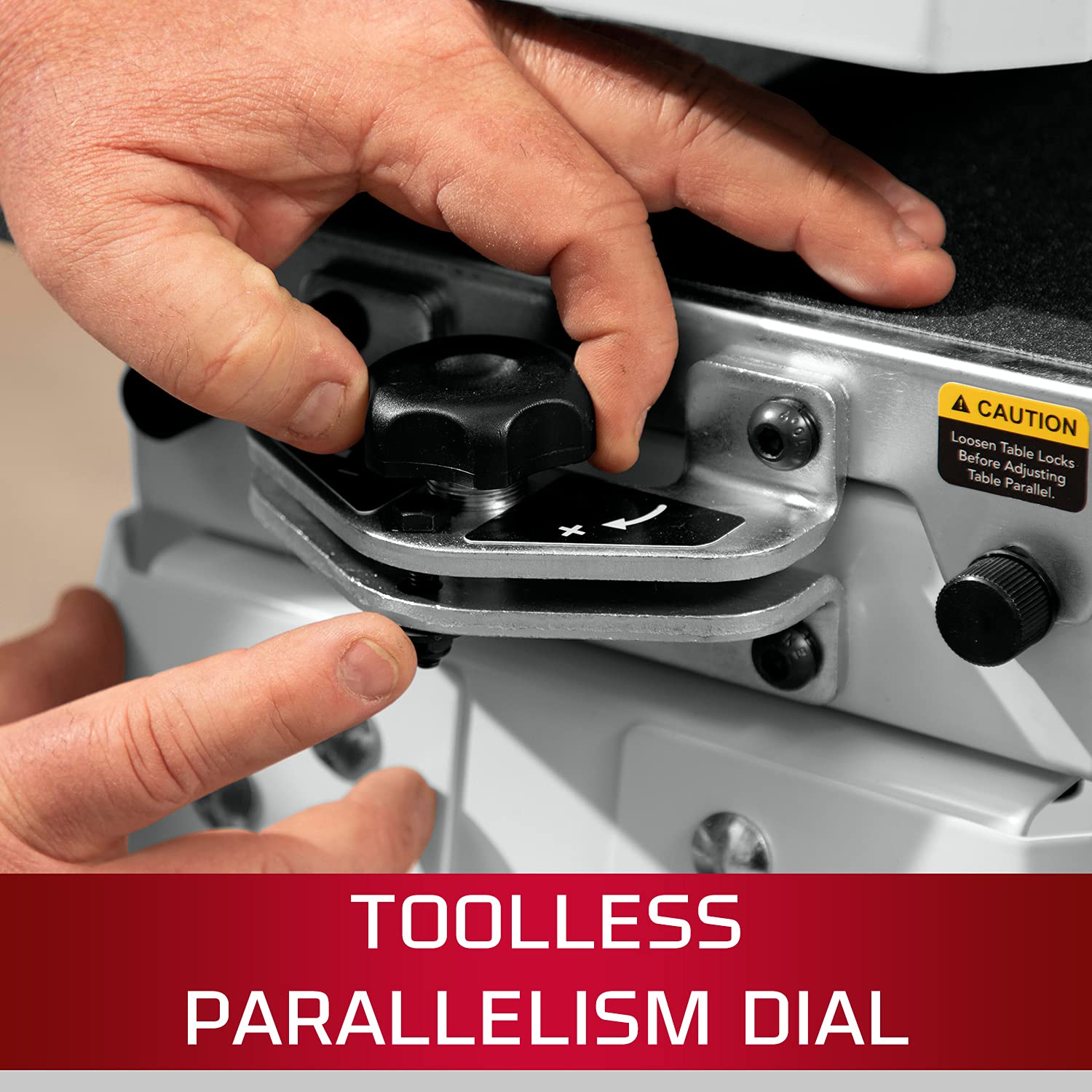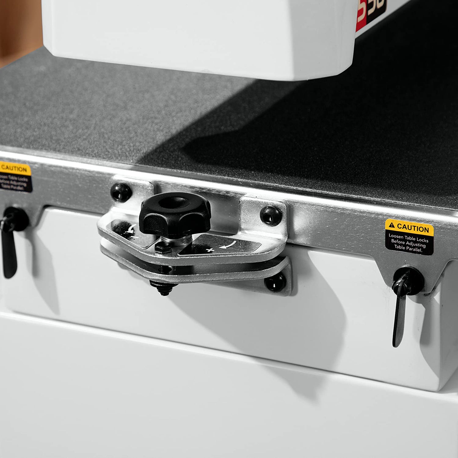 - Conveyor bed parallelism is easily adjusted by turning the dial on the outside of the bed (no tools required)