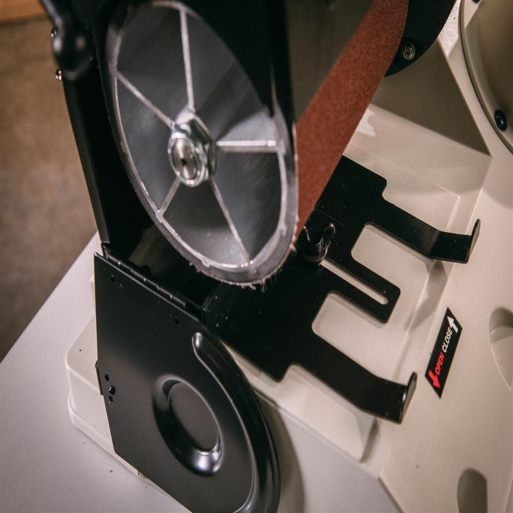 To help keep your workspace clean, healthy, and dust-free, this tool features an effective dust collection system. This system has a single four-inch dust port on the back of the base that evacuates debris from both the disc and belt through specially designed shrouds that maximize its effectiveness.