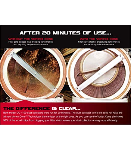 JET Vortex Cone Dust Collector, 30-Micron Bag Filter, 1-1/2 HP, 1Ph 115/230V (Model DC-1100VX-BK)
