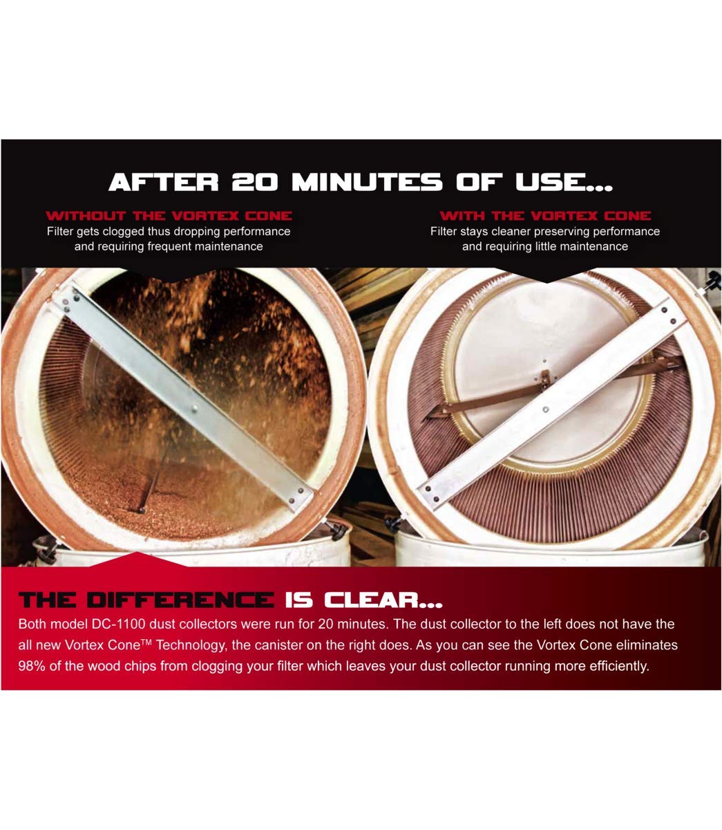 JET Vortex Cone Dust Collector, 5-Micron Bag Filter, 1-1/2 HP, 1Ph 115/230V (Model DC-1100VX-5M)