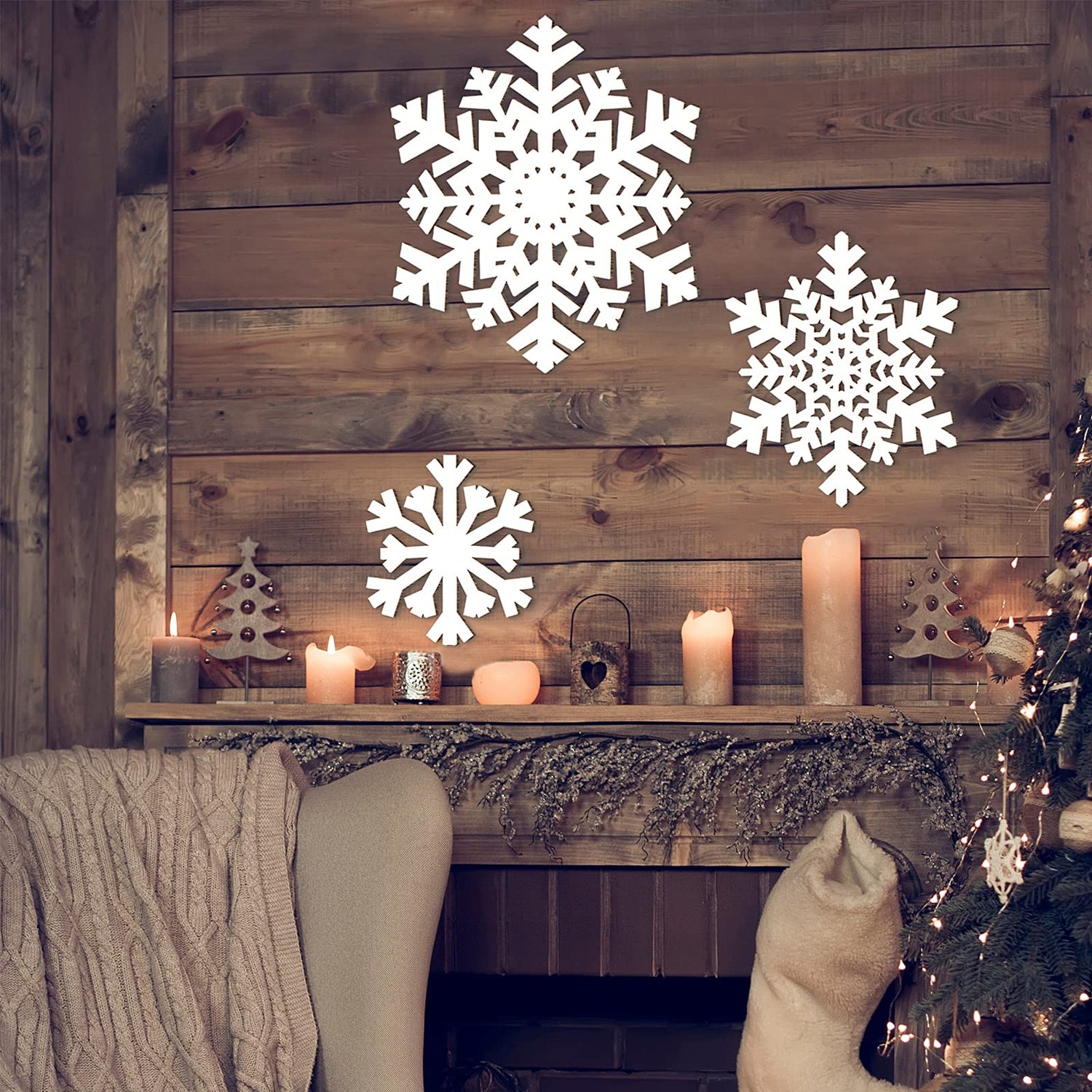 - What you receive: the package contains 3 pieces of snowflake wooden signs, which have the quality material and 3 different sizes, you can use them to decorate your home and other places, they will add more charming to your home