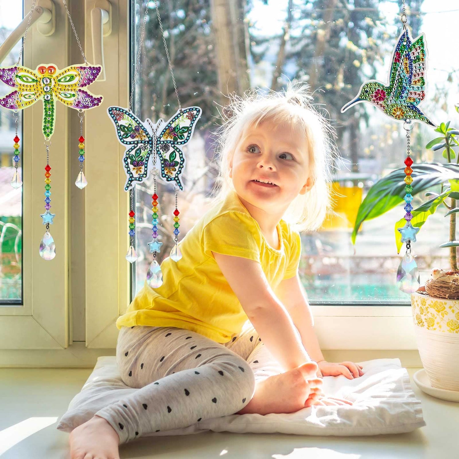 Jetec 3 Pieces Diamond Art Kits Painting Suncatcher Wind Chime Double Sided Crystal Gem Paint by Number Hanging Ornament for Adults DIY Window Home Garden(Dragonfly, Butterfly, Hummingbird)