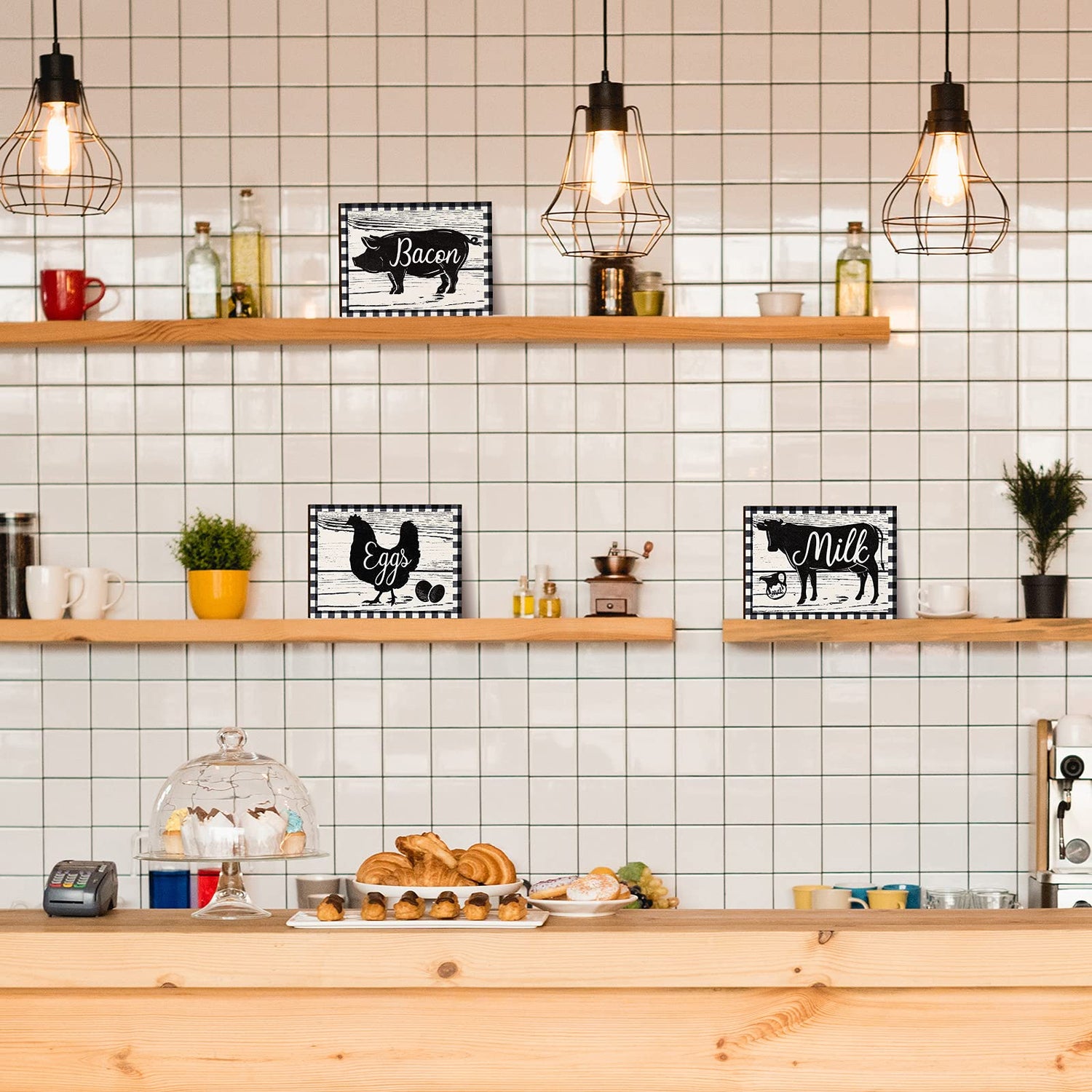 - What you will receive: you will receive 3 pieces of farmhouse kitchen signs, including cow, rooster and pig decors in 7.9 x 5.9 inch; Rustic wooden signs can help you create a warm atmosphere for your home
