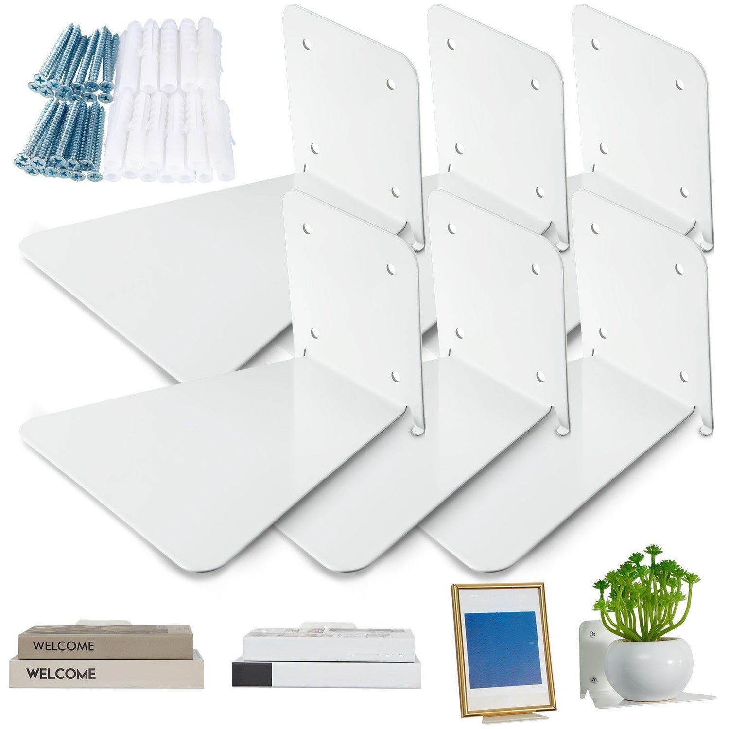 Jetec 6 Pack Invisible Floating Bookshelf for Wall, Iron Floating Book Shelves, Heavy Duty Hidden Book Shelf for Bedroom Living Room Office Library Bookcase (White)
