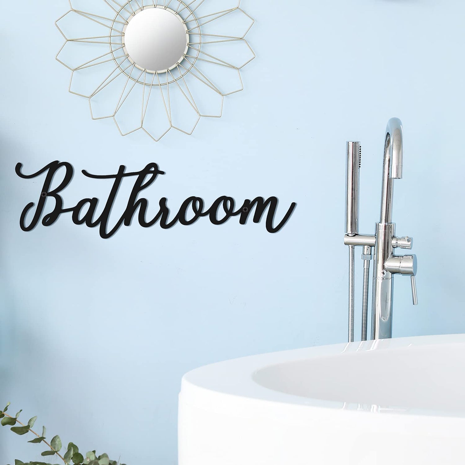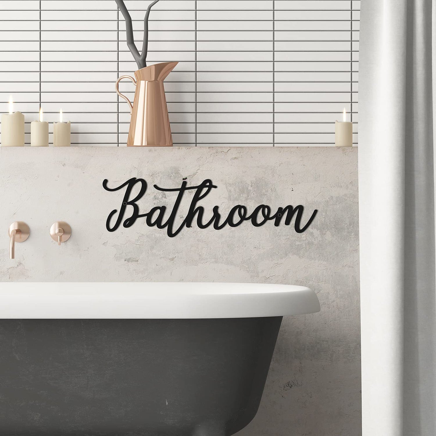 Jetec Iron Farmhouse Metal Sign Rustic Letter Sign Farmhouse Door Wall Art Vintage Room Wall Art with Black Letter(Bathroom)