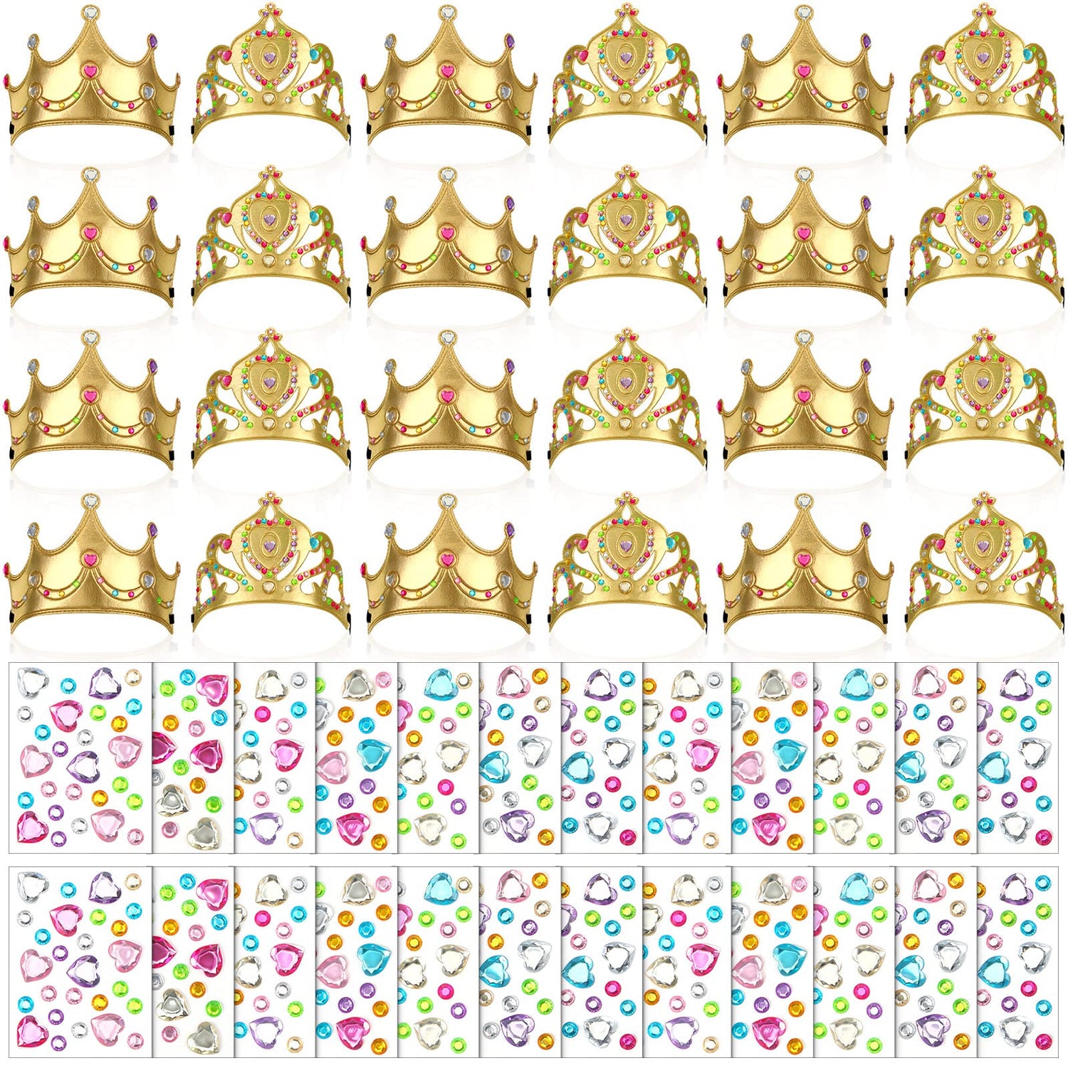 - Rich Princess Party Supplies: you will receive 60 pieces of party crowns with 2 different styles, 30 pieces for each, coming with 40 sheets of crystal diamond stickers, available in sufficient quantity and complete combination to meet your needs for DIY and sharing with others