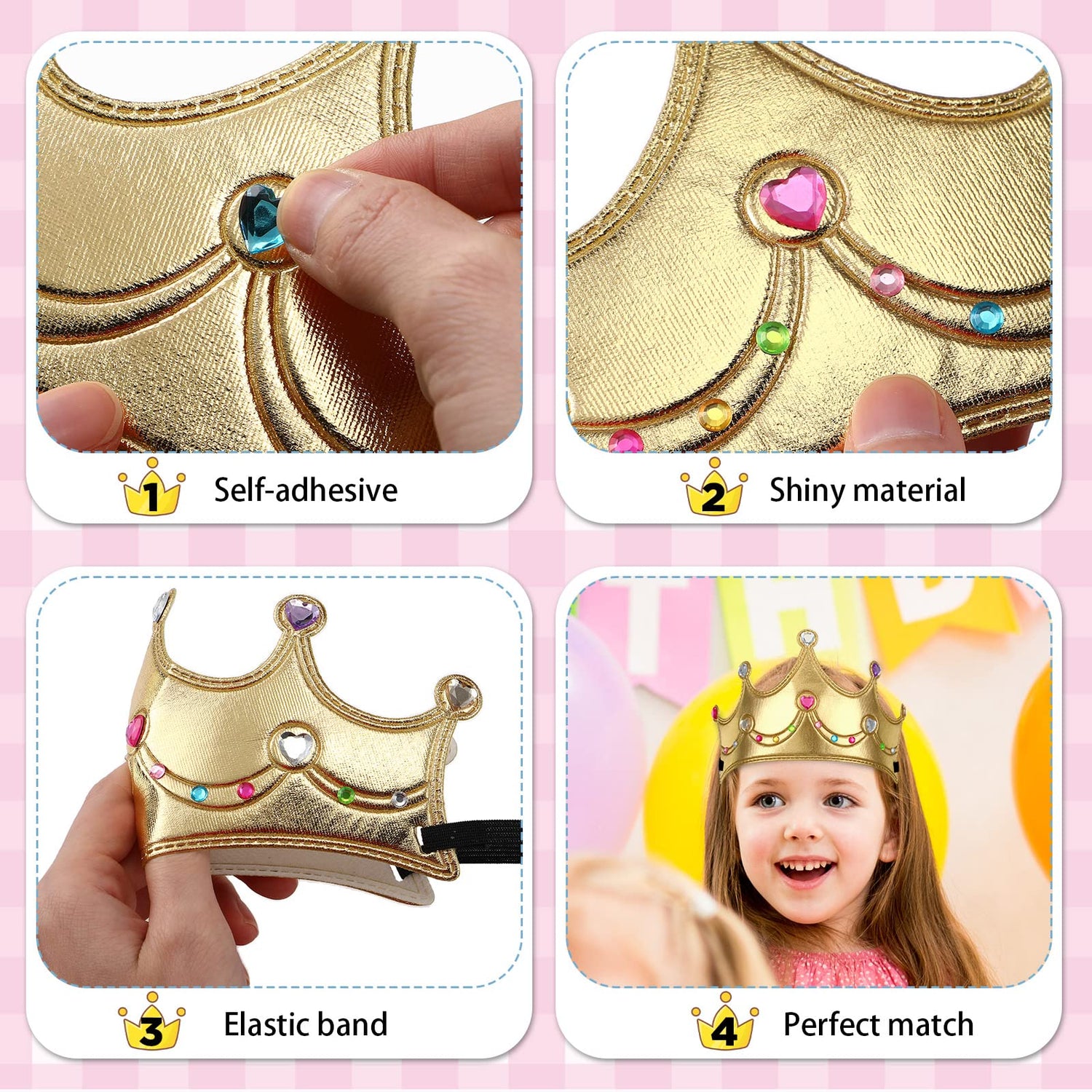 - Smooth Cloth Surface: kids king crown is made of foam and covered with cloth for sophistication; The stickers are made of acrylic with good adhesion, you can DIY your own crown with them with confidence; Our products are suitable for 6 years old above people