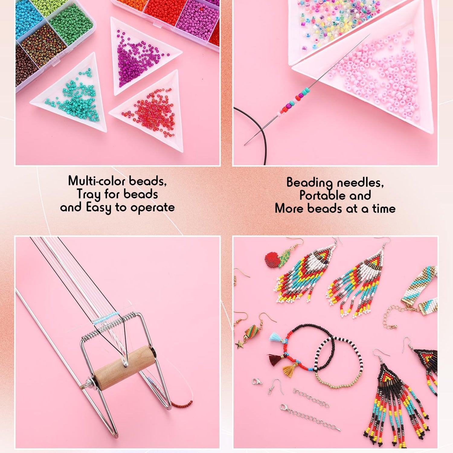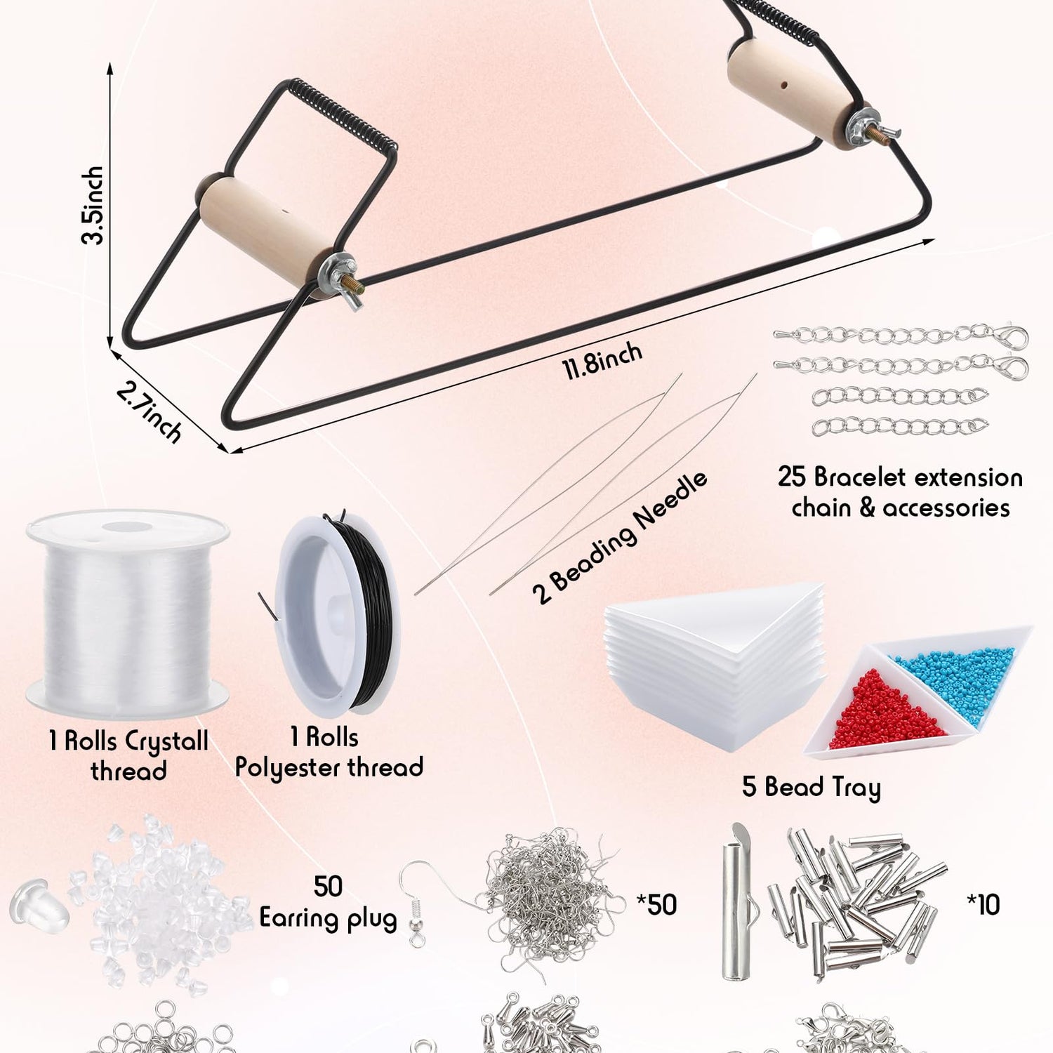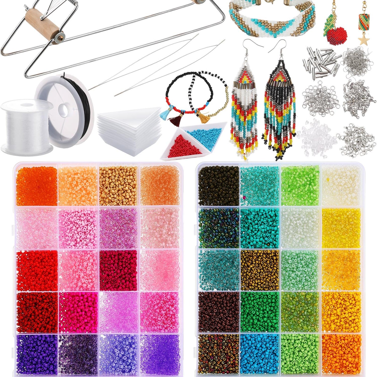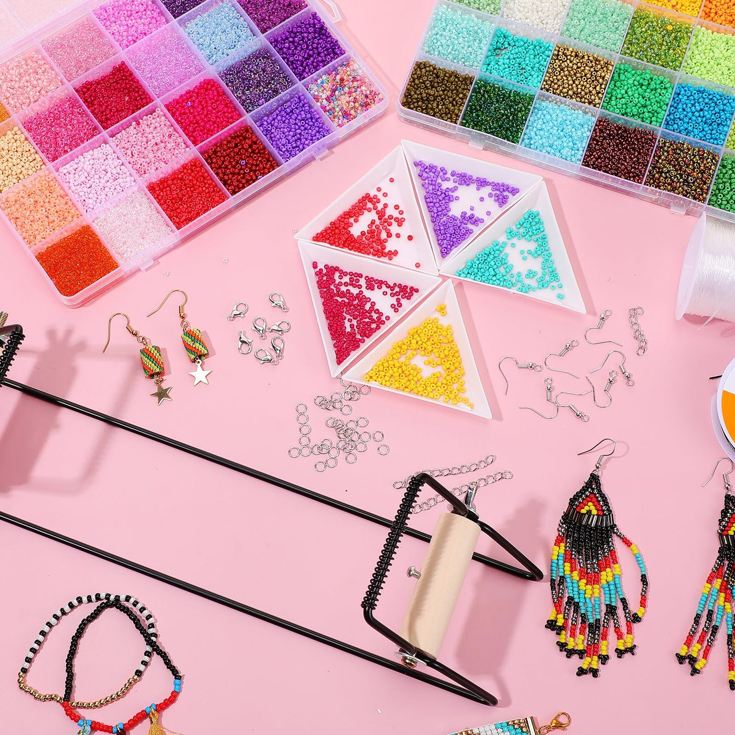 - Beading Loom Kits: you will get 1 metal bead loom, 24000 2 mm glass seed beads in 48 different colors, 1 crystal thread, 1 polyester thread, 2 bead needles, 5 bead trays, 10 sliding buckle tubes, 25 extension chains, 25 lobster buckles, 25 teardrop pendants, 50 ear hooks, 50 open rings, sufficient kit to meet your DIY needs