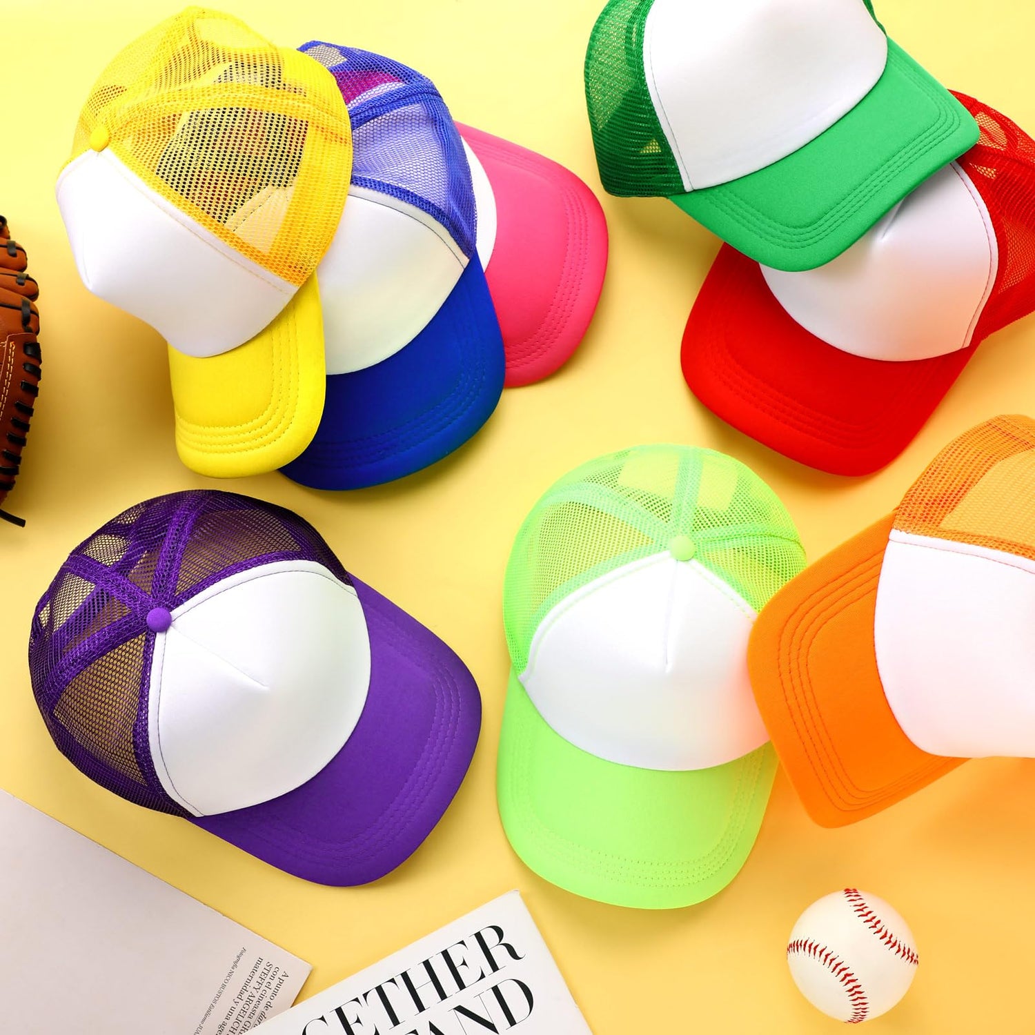 - Colorfast Hat: our sublimation hat adopts advanced color fixing technology, you don't have to worry about washing it or sweating it to make it fade; Color remains vibrant after repeated washing or sun exposure, you can get 48 pieces polyester plain mesh caps, red, pink, yellow, green, blue, purple, light green, orange, 6 of each color