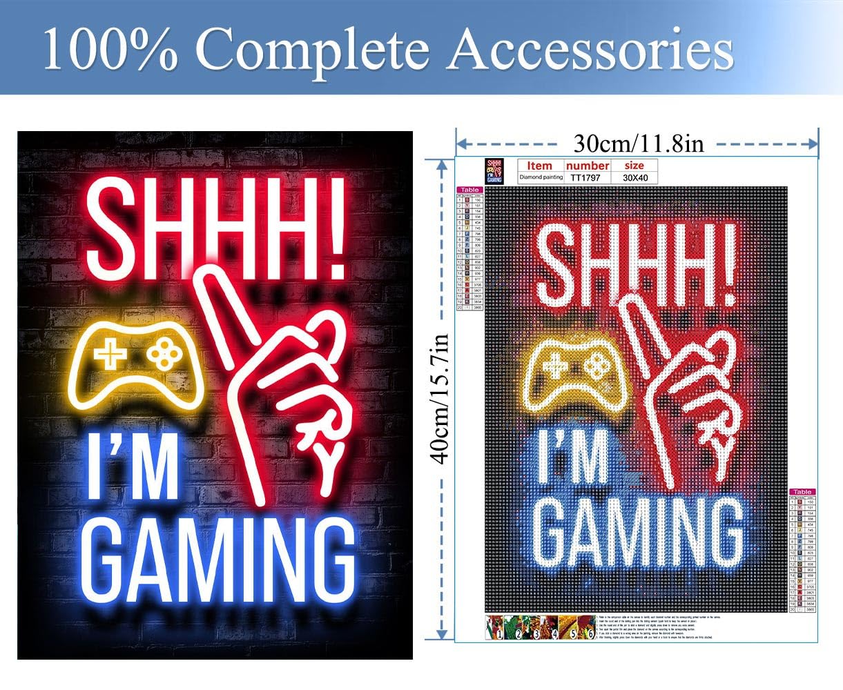 - SHHH I am gaming Diamond Painting Kit :The Diamond painting Kits for adults and kids are made of canvas, printing the picture in different styles. Embroidery painting decorated with crystal diamonds. Reality of the picture, Easy-to-operate and stick well with long storage time are core performance of our quality