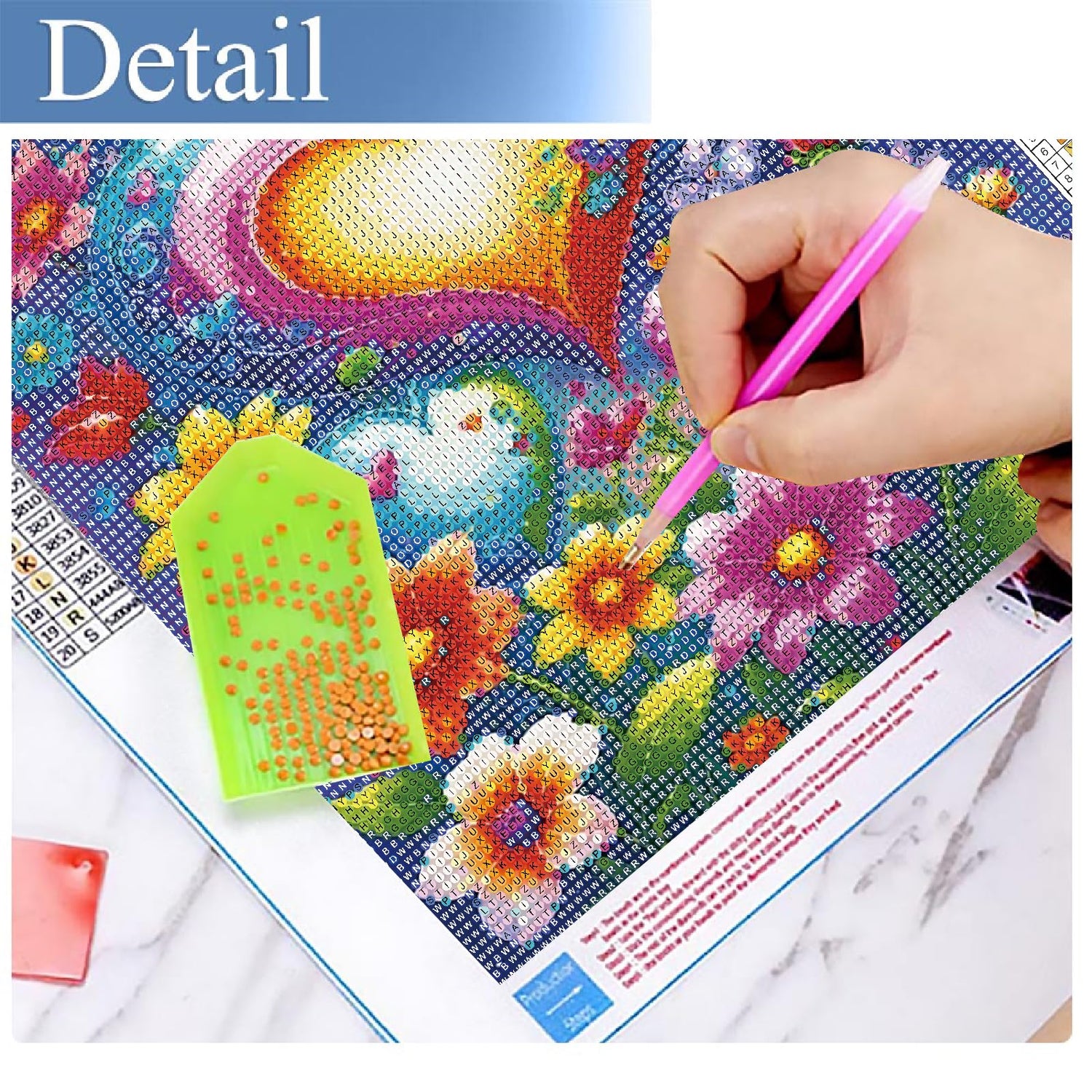 - Round Flower Full Drill Diamond Painting Design: Full drill means that all patterns are covered by diamonds. Stitch diamond painting kits for adults are round. Which makes the finished stitch diamond art look more sparkly and dimensional.