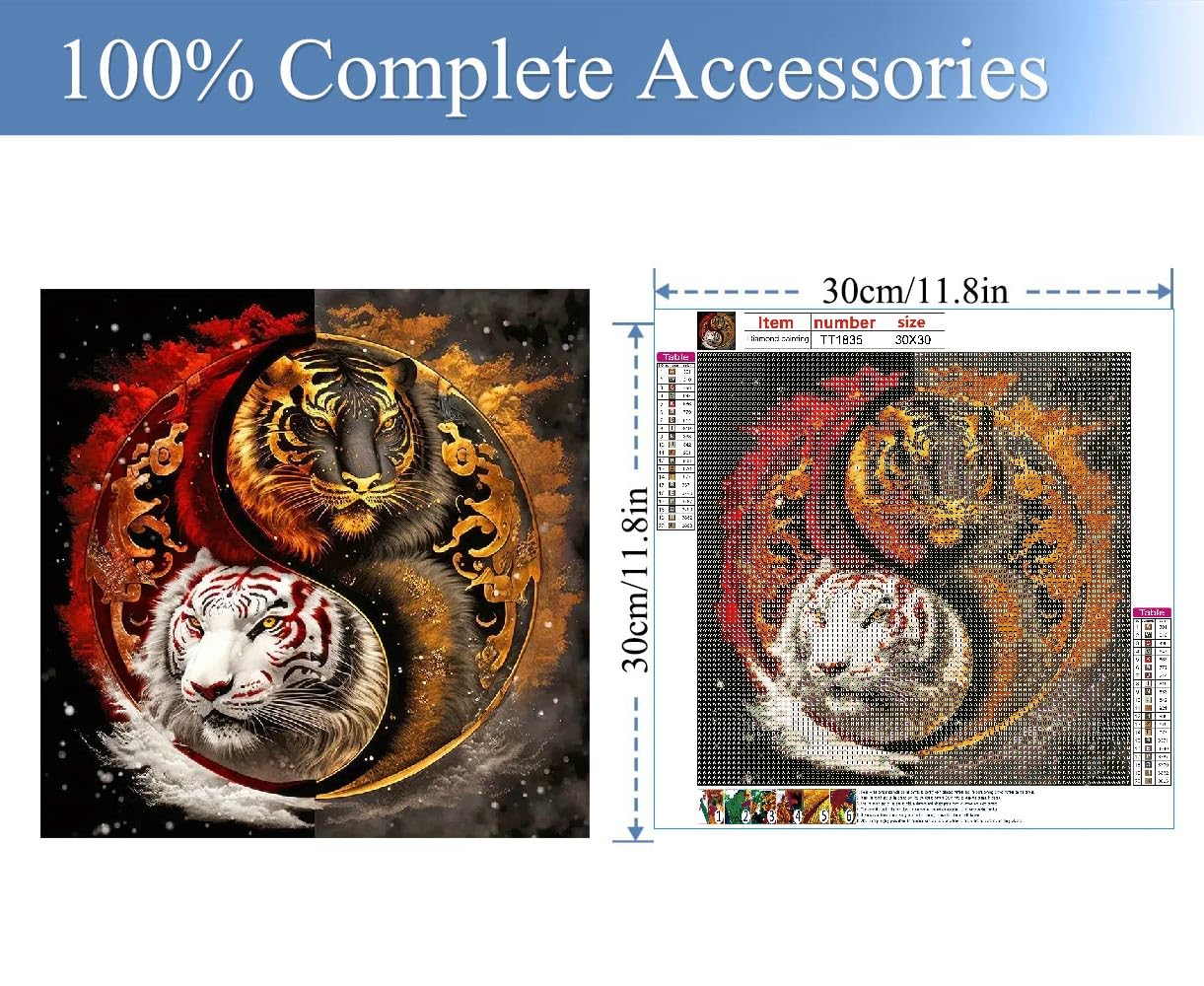 JFYHAB Tiger Diamond Painting Kits-Taichi Tiger Diamond Painting Kits for Adults,5D DIY Full Drill Dragon Diamond Art for Home Wall Decor 12x12inch