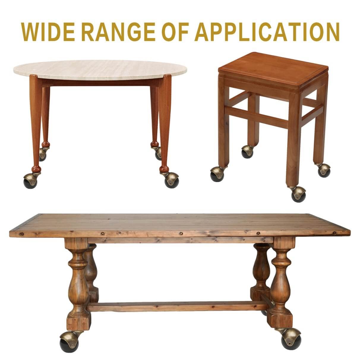 - WIDE RANGE OF APPLICATION -- It is the perfect ball casters wheels for furniture, plant stand, rack, wood chair, dresser, file cabinet, sofa, equipment and more. Vintage table wheels sets 4 make furniture more classic, raise furniture up to proper height. If any question, please contact us at any time to get customer service support.