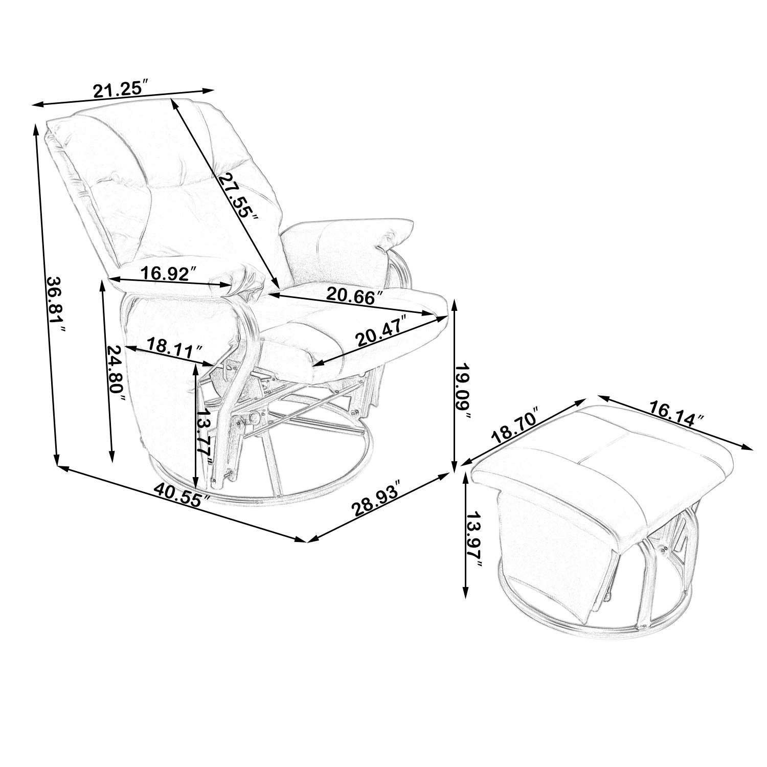 JIASTING Recliner Chair with Ottoman Living Room Chairs Faux Leather Glider Chair 360 Degree Rotation Leisure and Relaxation Furniture (Black)